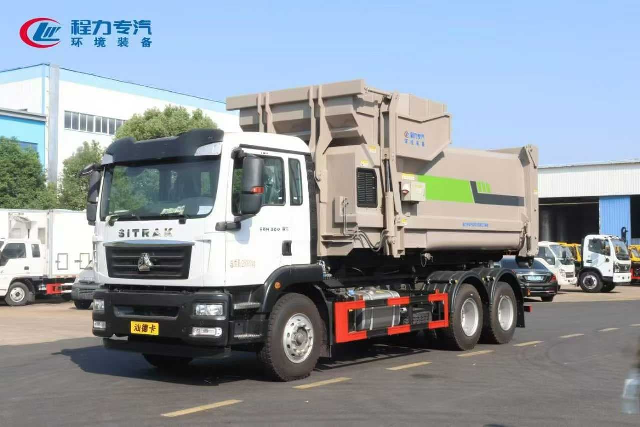 底盘配置:汕德卡一排半驾驶室G5H-M驾驶室;MC07H.35-60(德国曼350马力国六发动机)发动机;HW19710(重汽10档)变速器+HW50法兰式取力器;H653自调臂前轴(6吨鼓);MCJ11冲焊自调臂双后桥(11吨鼓);双层车架(8+5/280);ZF8198方向机;前后标准版多片簧(11/10);中…