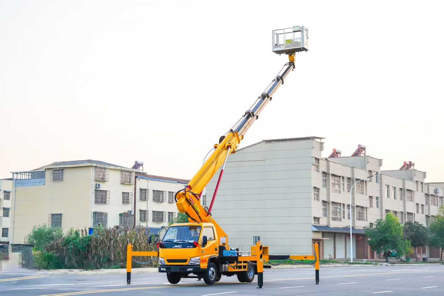 底盘配置:JX1041TCF26,2800轴距,发动机型号JX493ZLQ6F,130马力,五档变速箱,空调,方向助力,遥控中控锁,电动车窗,7.00钢丝胎,断气刹。上装配置:五节十六边形同步伸缩臂,前V后V型双节支腿如果您对于这款江铃顺达28米五节臂高空作业车车型感兴趣,想要…