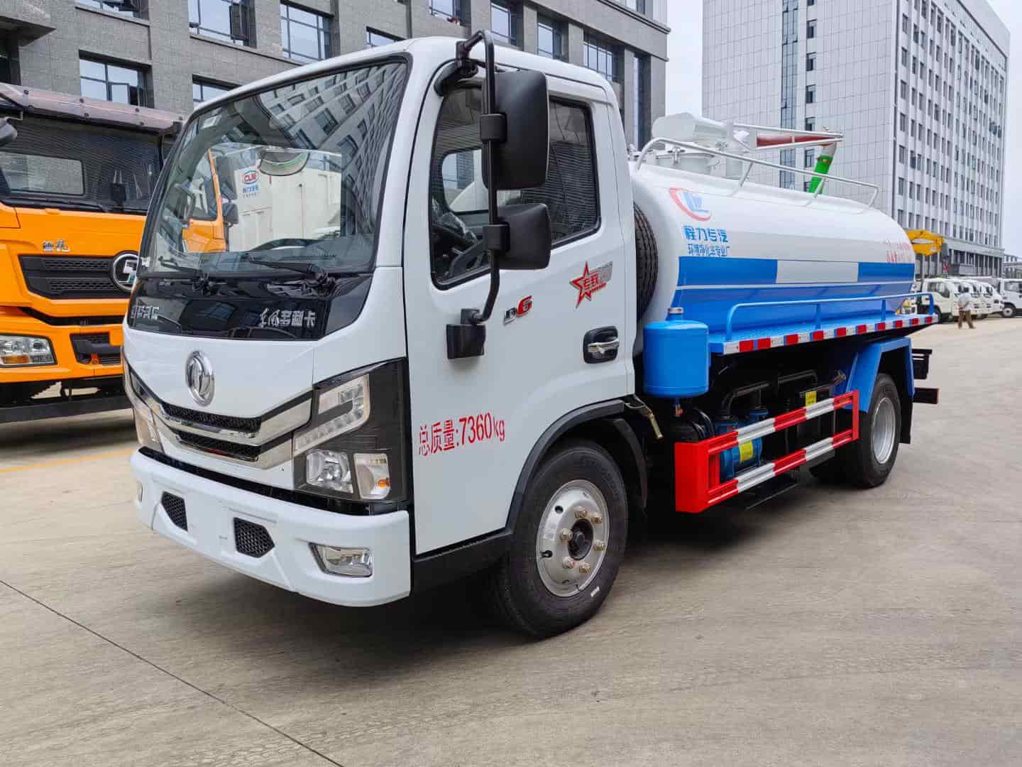 底盘配置:采用东风多利卡原装底盘,白色驾驶室(颜色可选),全柴136马力国六发动机,双层大梁,万里扬5档变速箱,轴距3308mm, 7.00钢丝胎,原厂ABS,带方向助力,离合助力器,气刹制动。改装配置:罐体中间加装防浪板,容积5方,采用优质5毫米钢板制作,前后…