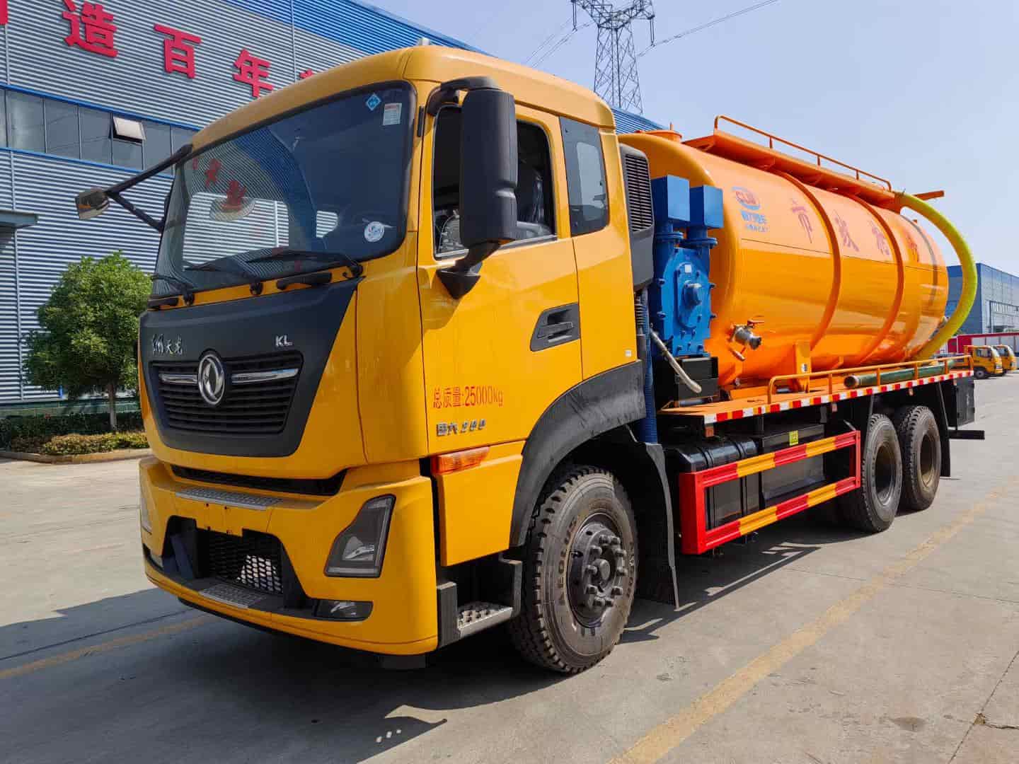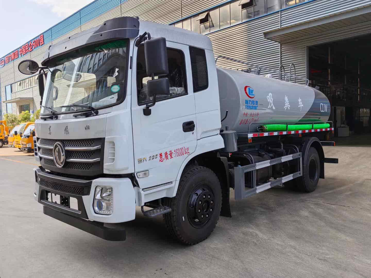 底盘配置YCS04200-68发动机,轴距3950mm,东风随专K6驾驶室,法士特小八档变速箱带取力器,3.6t前桥/8t后桥,10.00钢丝胎,空调,气囊座椅,中控,多功能方向盘,行驶记录仪。改装配置:污罐容积12.5方,采用武钢优质钢板制作,壁厚6mm,罐体中间合理设计防浪板…