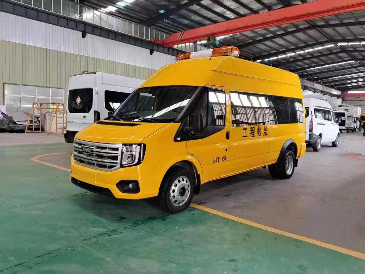 底盘型号: JX6605TB—N6外形尺寸mm:5998x2098ⅹ2900;2820,2620轴距(mm):3750额定载客6,9(人)救险车 10~15(人)运兵车2.0排量 145马力柴油发动机长排+凸台警灯 警报器 后舱左右侧不锈钢设备柜 ,双10升氧气瓶、软担架等。也可根据…