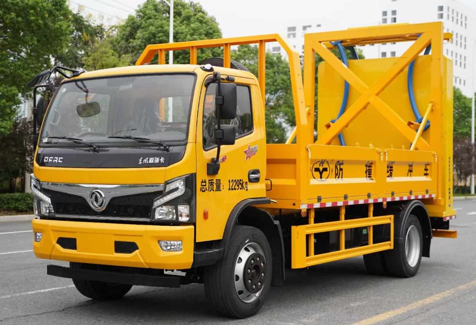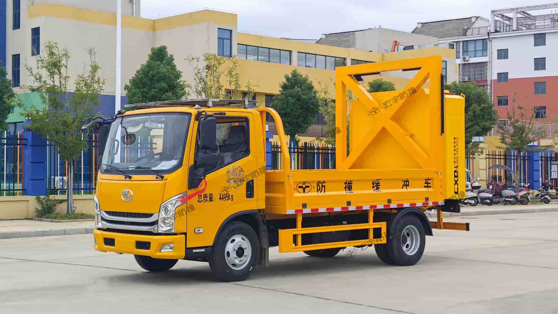 云内150万里扬档6速箱 空调电玻中控 8.25R钢丝胎 220双层大梁 2.7吨前桥5.5吨后桥,上装配100K防撞缓冲垫,带高音喇叭,显示屏,箭头灯等。如果您对于这款东风福瑞卡防撞车车型感兴趣,想要了解详细价格,图片,配置参数,欢迎与我们联系噢!湖北扬晟专用汽…