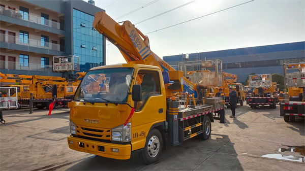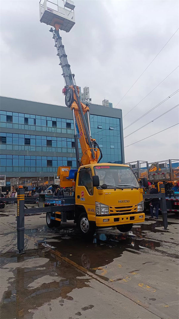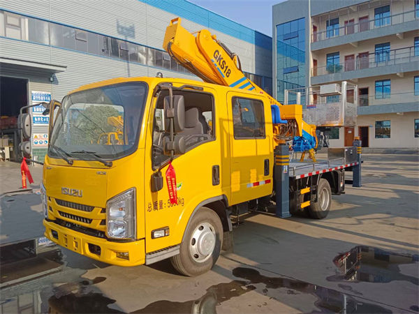 轴距3815,五十铃120马力发动机双排驾驶室,带空调,带ABS,带助力最大作业高度18米 电控操作,转台和吊篮双操作,油缸装有双向平衡阀,带油缸锁止功能,四节直臂,支腿与工作臂互锁,四个液压支腿全伸并且可单独调节…