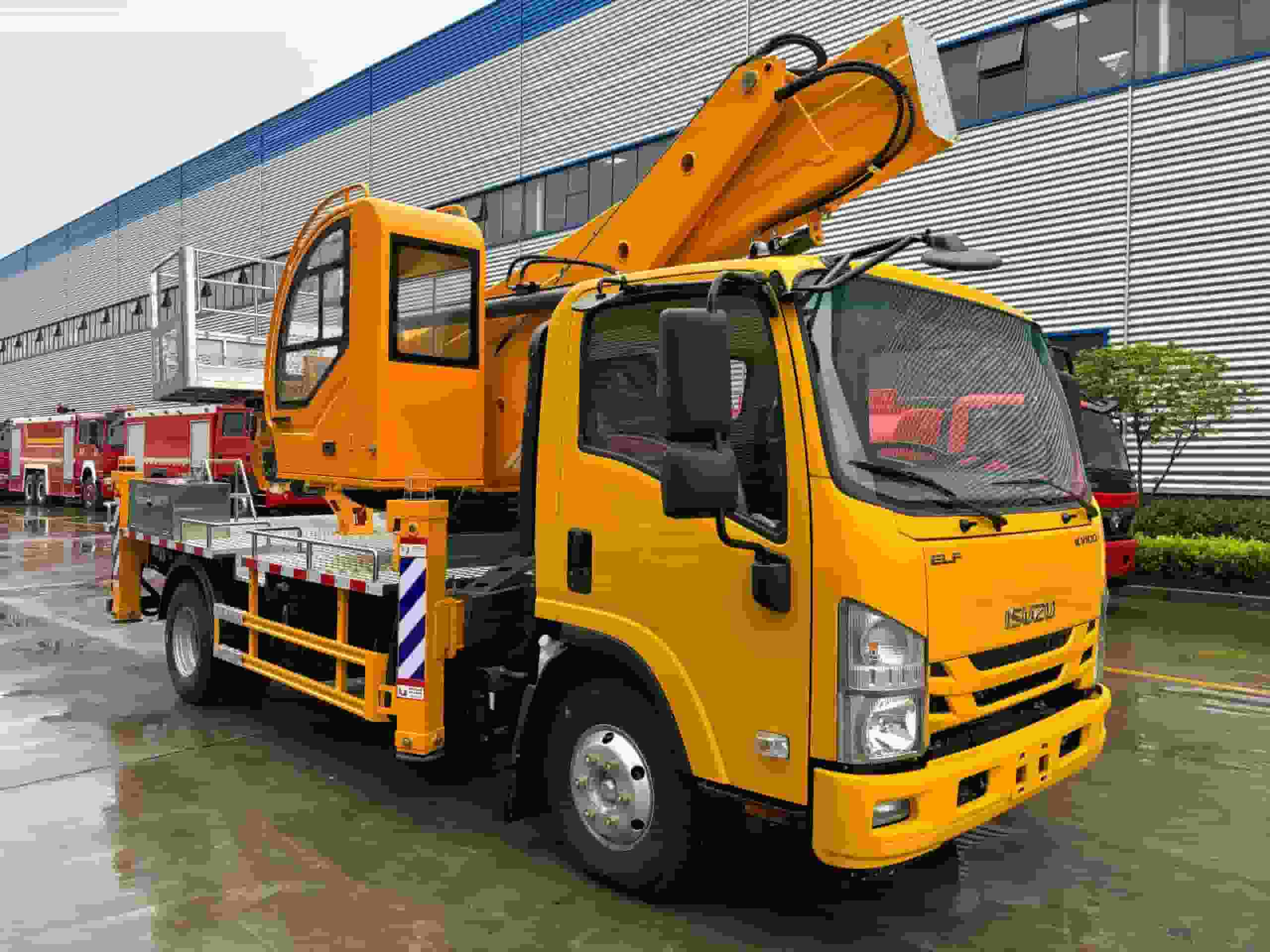 底 盘 配 置:底盘型号为: QL1080BUKAY,KV100P底盘配五十铃宽体驾驶室,轴距3815,120马力 国六五十铃4KH1CN6LB发动机配五十铃5档变速器,带空调,方向助力,中控锁,电动玻璃,带ABS,断气刹,车型标配750R钢丝胎。上装配置:最大作业高度30米,十四边形型工…