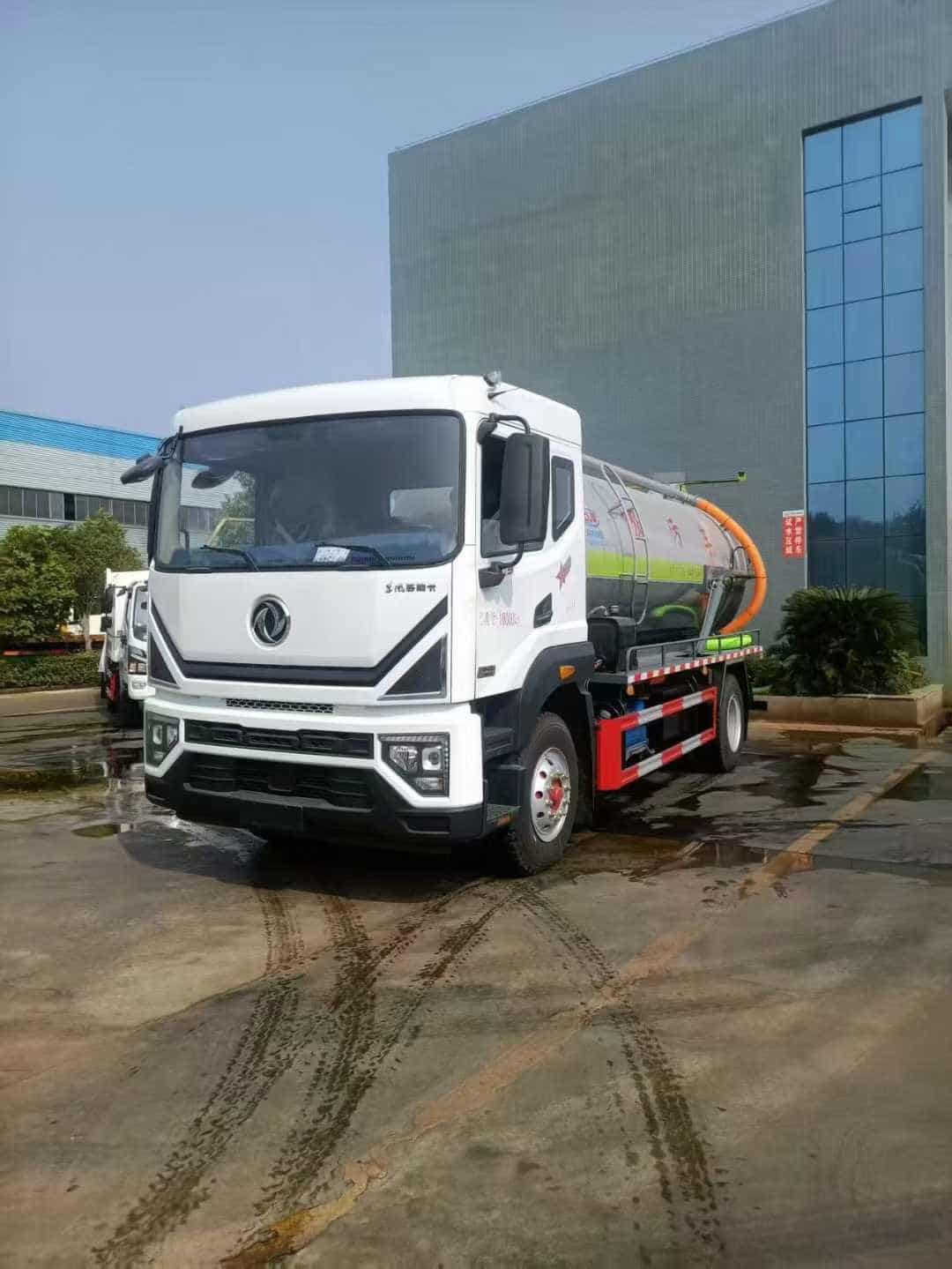 康明斯240马力的发动机,4500的轴距,10.00的钢丝轮胎上装配置:罐体容积约14方,用碳钢6个厚的板材制作.封头6个厚.圆形罐体,罐内有防浪板,罐体带举升尾部后门可液压开启关闭并手动锁紧装置,配sk-15水循环泵,碳钢水箱.两边平台用花纹板制作.一个100的吸污口…