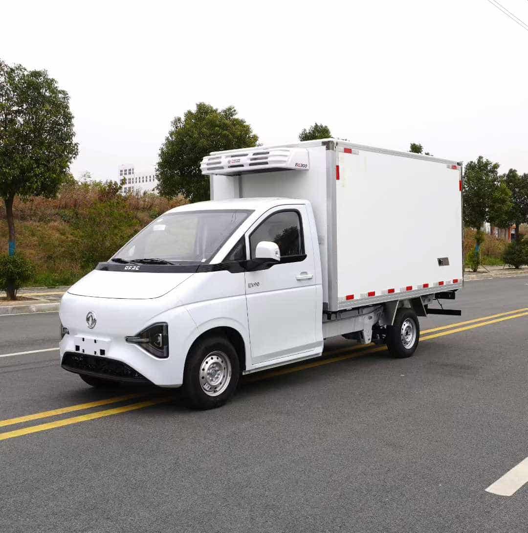 整车尺寸:5600*1800*2620(mm)箱体尺寸:3100*1630*1630(mm)苏州汇川动力82马力,宁德时代41.86度电箱体配置:内外玻璃钢,8cm保温层,不锈钢锁件,华盛火星EV300冷机。底盘配置:自动档变速箱,185R14LT8PR轮胎。轴距:3400mm如果您对于这款东风EV90纯电动出口…