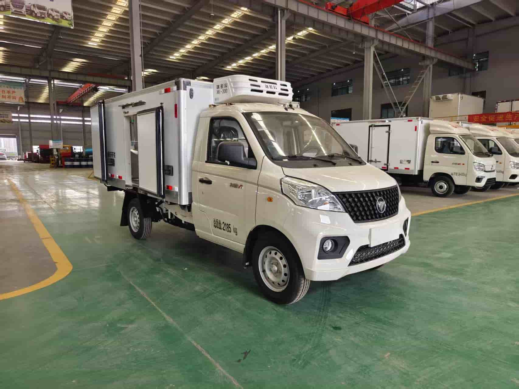 整车尺寸:4960*1720*2190箱体尺寸:2795*1545*1200底盘配置:1600车身,DAM15KR发动机、115马力、DAT18R-5挡变速箱、102后桥、175R14轮胎、ABS、电动助力转向、前稳定杆、单轮,油刹,原厂空调,中控锁,电动玻璃,导流罩。【上装配置】(1)制作工艺:厢体采用真…