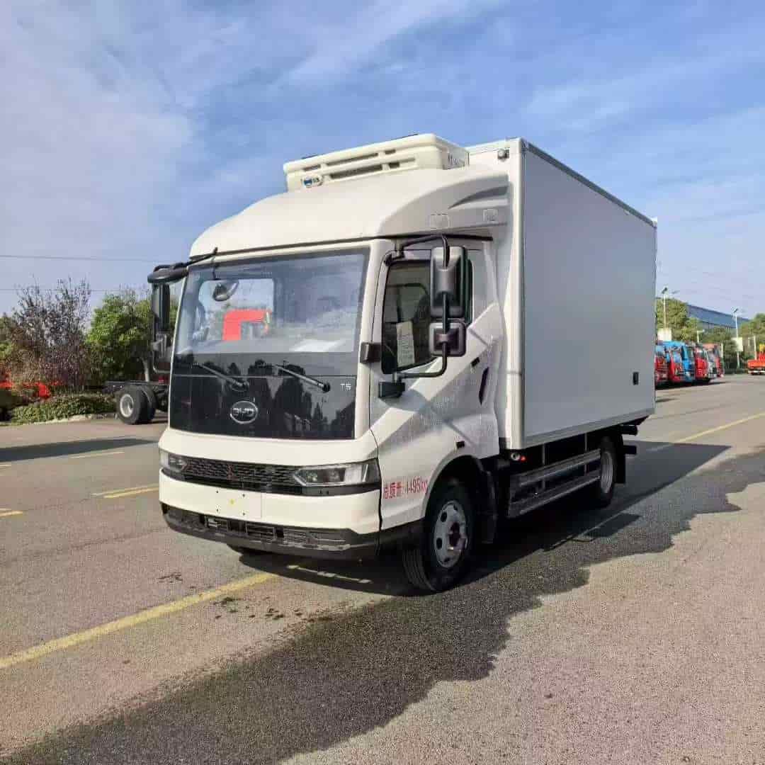 底盘型号:BYD1040A3BEVC3底盘尺寸:5955*2260*2465箱体尺寸:3945*2100*2100总质量: 4495整备质量:3250轴距:3360准乘人数:3人板簧:3/3+2电量: 刀片电池100度续航里程:>230公里电机额定功率:70KW,峰值功率150千瓦轮胎:7.00R16轮胎质保服务:电池8年/50…
