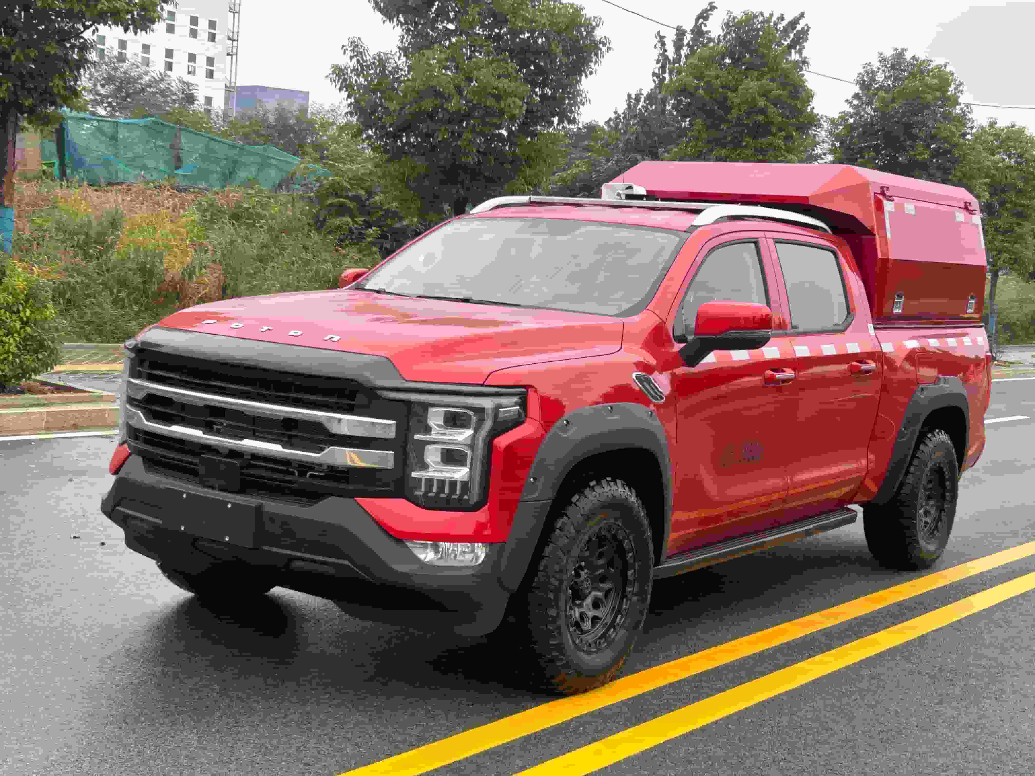 福田火星7全尺寸大皮卡,.车厢顶部封闭,不可开启;3.该车专用装置:发电机,扩音器,控制柜及摄像云台等配套系统,该车主要用于应急救援现场指挥工作;4.尾部照明装置仅在驻车时可开启.底盘配置:柴油四驱自动挡,福田4F20TC17--2.0T发动机(1968ml),3505轴距,8AT变…