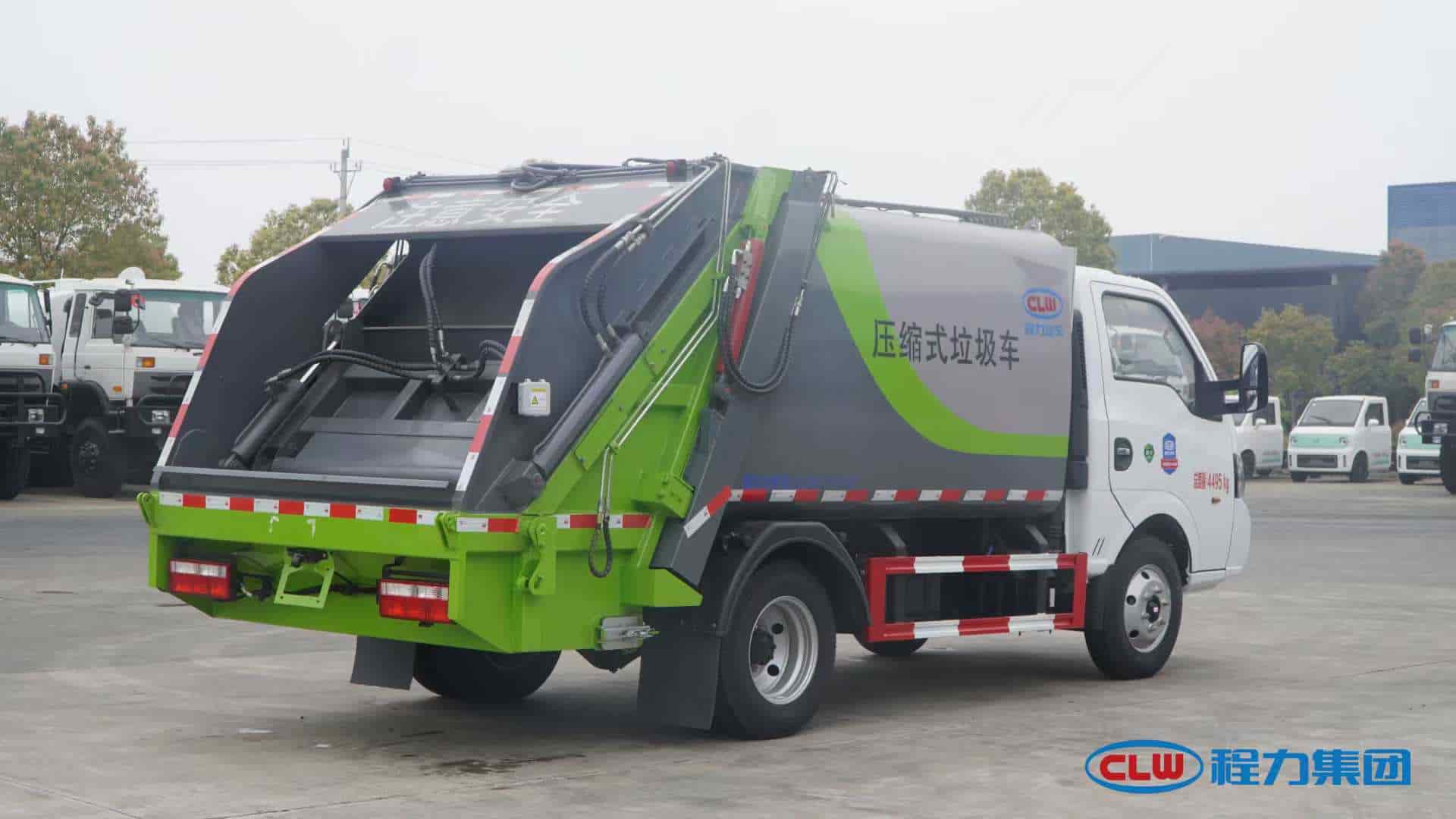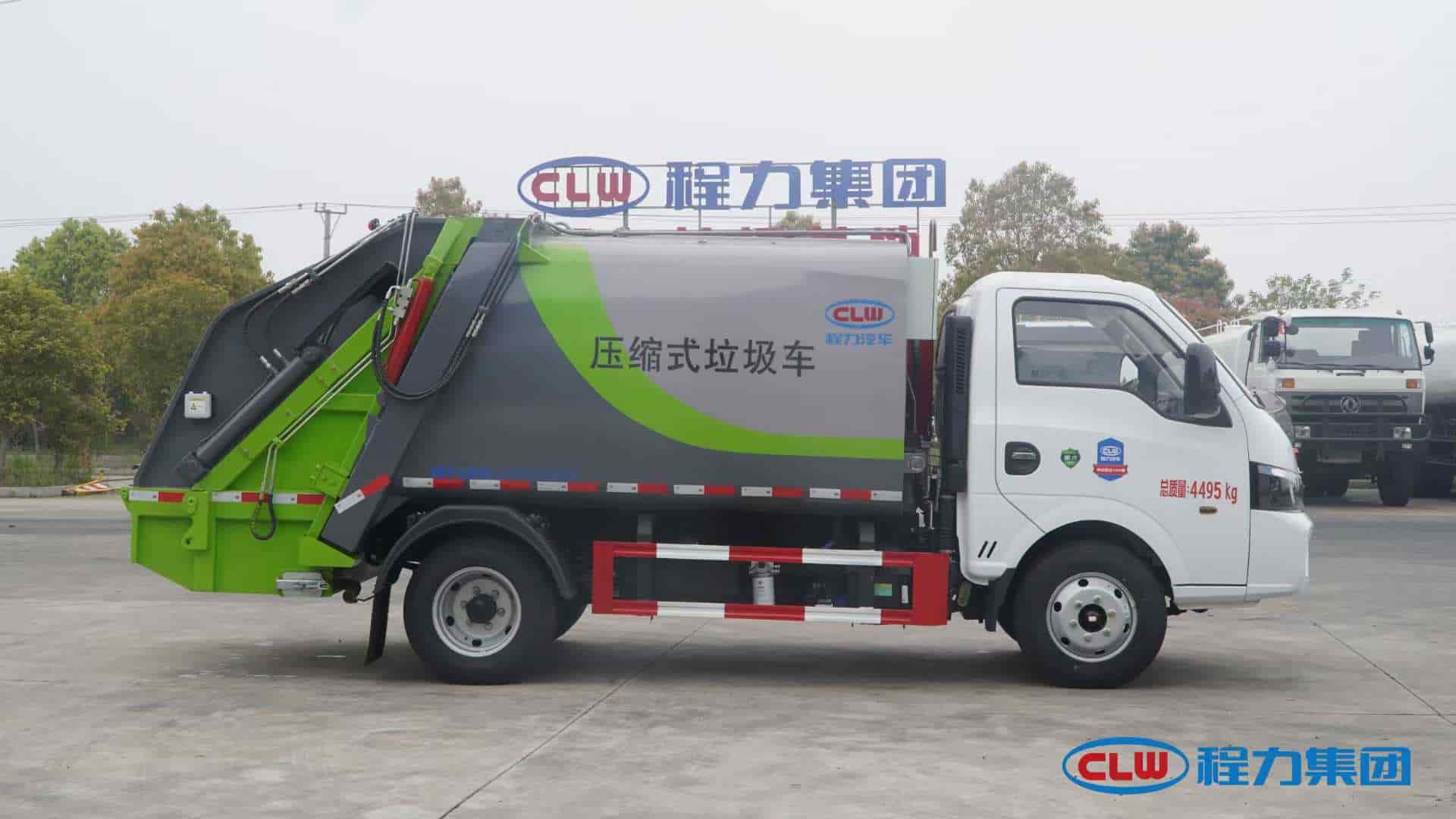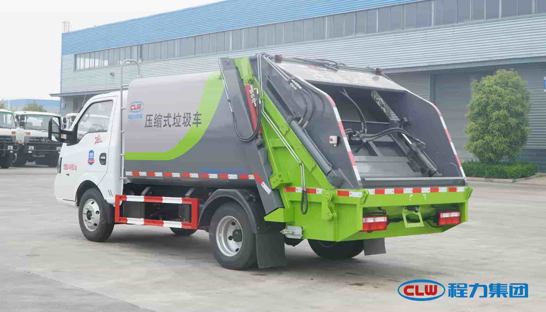 上装配置:箱体的净容积是5方,箱体边3底4制作,箱体容积最大化,推铲油缸调质 处理,采用3级制作,使推铲占用空间最小化,箱体容积最大化,垃圾装载更多!上装 电液配置:齿轮泵,海普瑞斯多路阀,平衡阀,压缩阀,截流阀,联城液压油 缸(所有油缸经过调质处理,带缓冲),CAN总线智能屏一键操作系统,带无线遥控,系统程序可根据用户使用条件需 求在智能屏上自行设置,可自行设置自动运行转换时间,油门控制大小,带自动故障检 测,报警提示功能,其它标配。