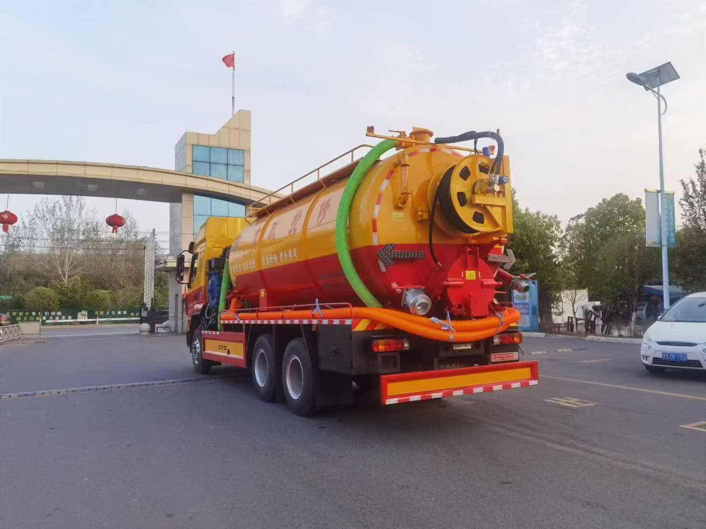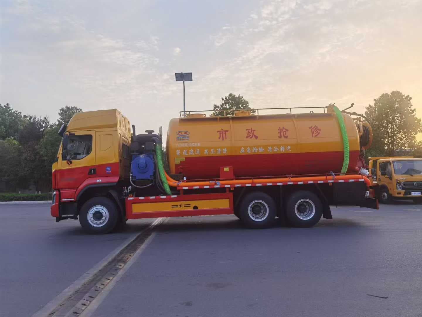 上装配置:罐体容积约22方,8m碳钢板材,清水约6方,其余为吸污,两仓球阀互通。两仓中间用封头,品孚350/通洁350流量高压清洗泵,配100米高压管。258水环泵配420马力副发。卷盘装后封头180度旋转,后封头液压打开。后封头上一个800水泥盖放污,可液压开启,侧面一个150偷排球阀,后封头一个150出口球阀,一个100球阀,罐内铺不锈钢板,整车重载版设计,罐体尾部箭头灯,带一个视污窗口。带8米吸污管。选装加装4寸液压渣浆泵其余厂内标配。