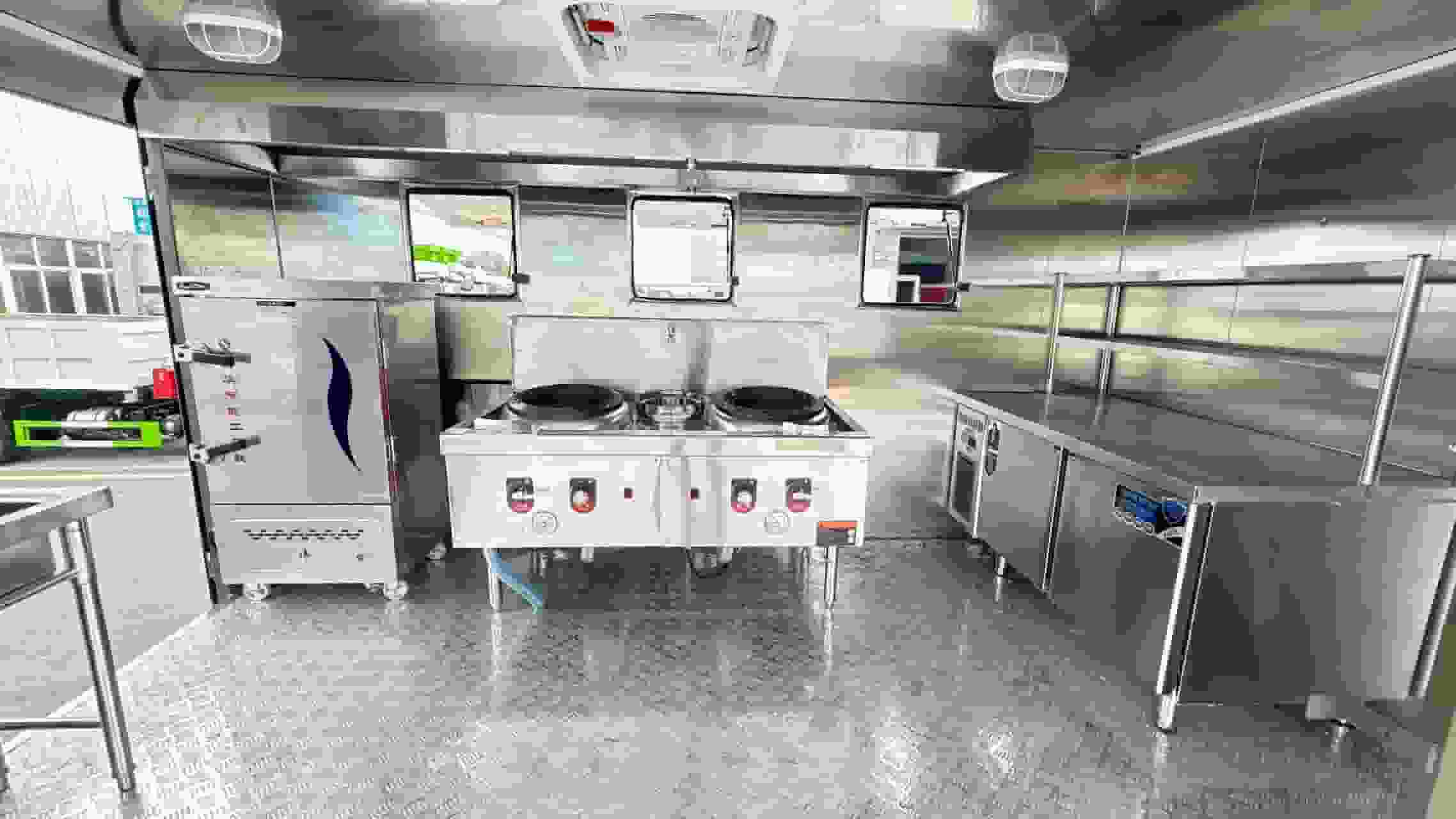 (3)通风设备:排烟机及烟罩1套,车顶手动开启天窗1个,侧板手动开启透气窗3个。