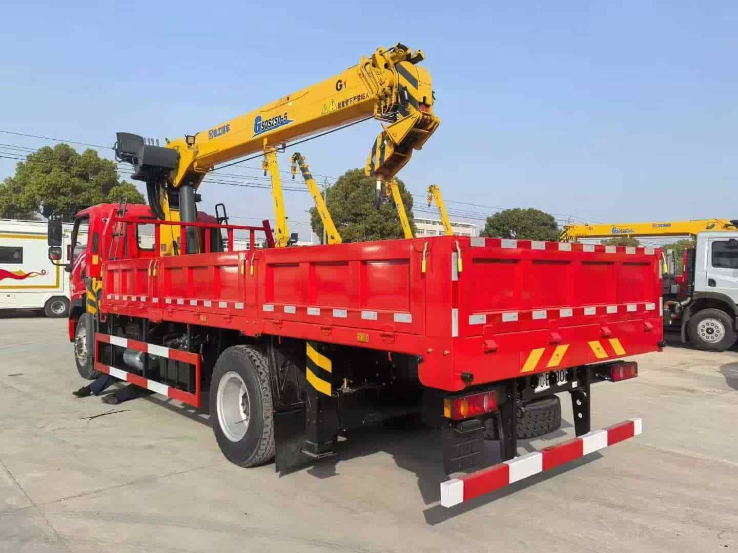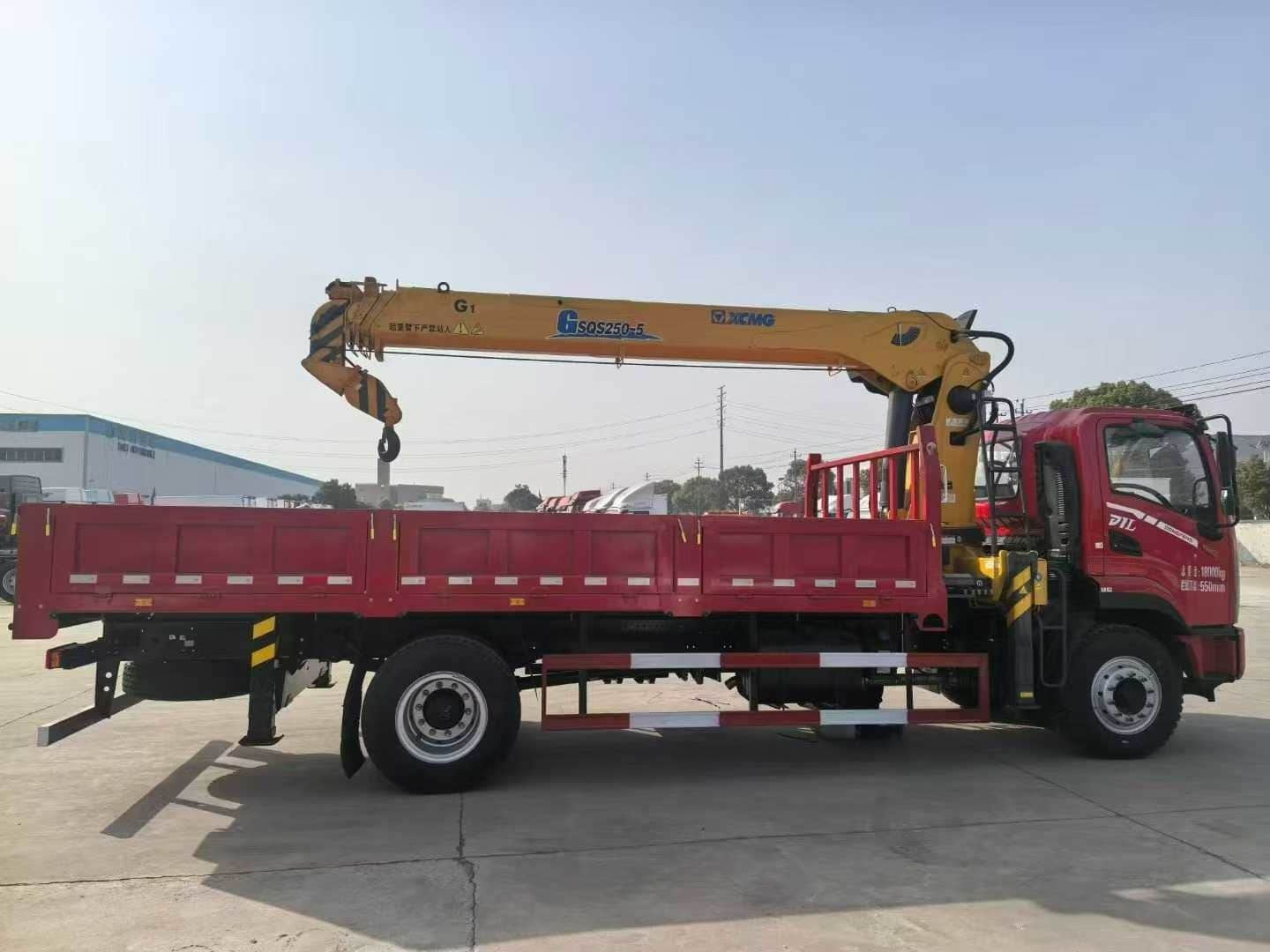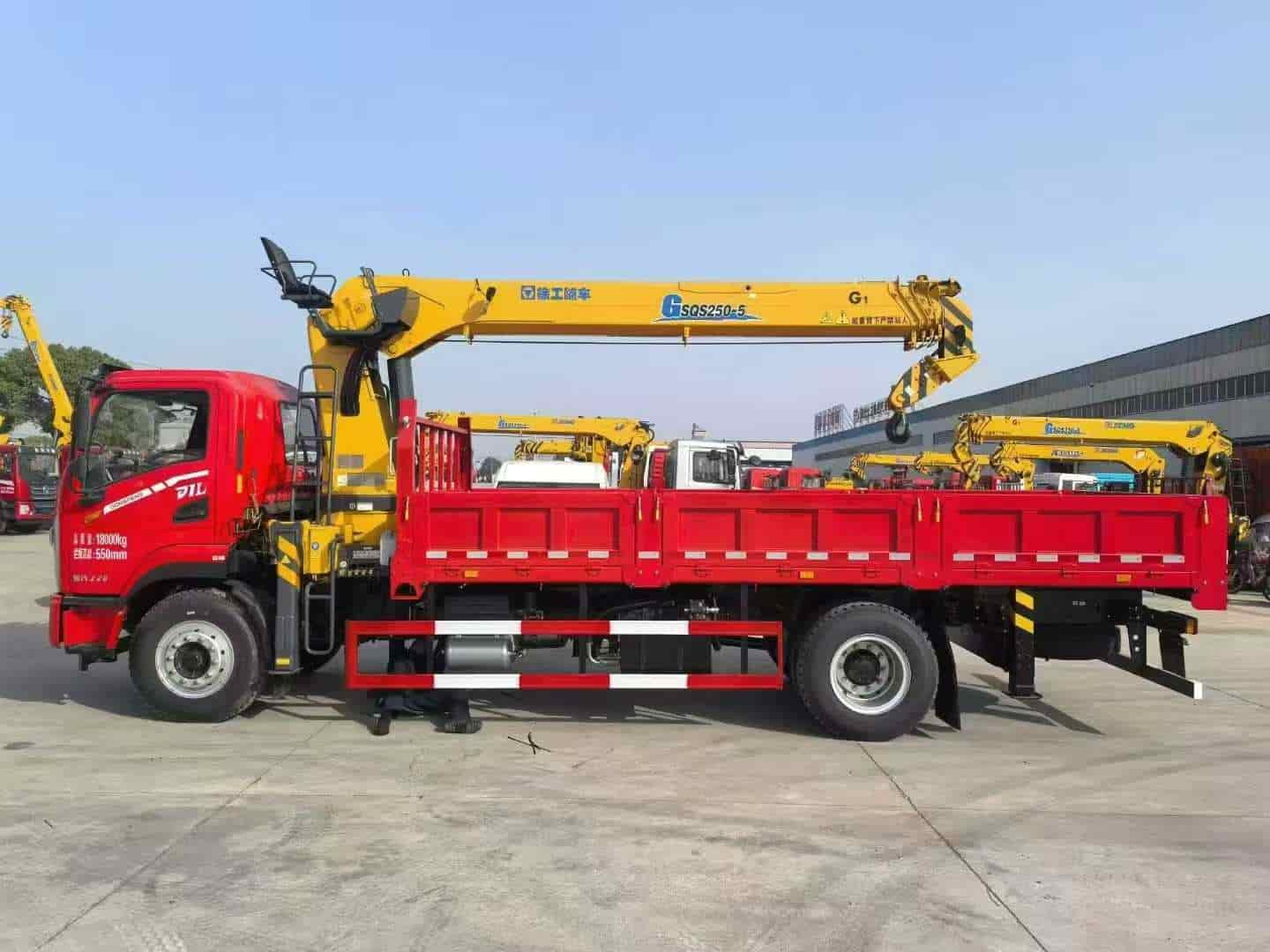 上装徐工G系列10吨五节直臂吊机GSQS250-5,双联泵,上操作,臂长18.8米,举升高度20.8米,双腔复合前支腿,全液压,全回转,带一键启停。带徐工液压单腔后支腿。