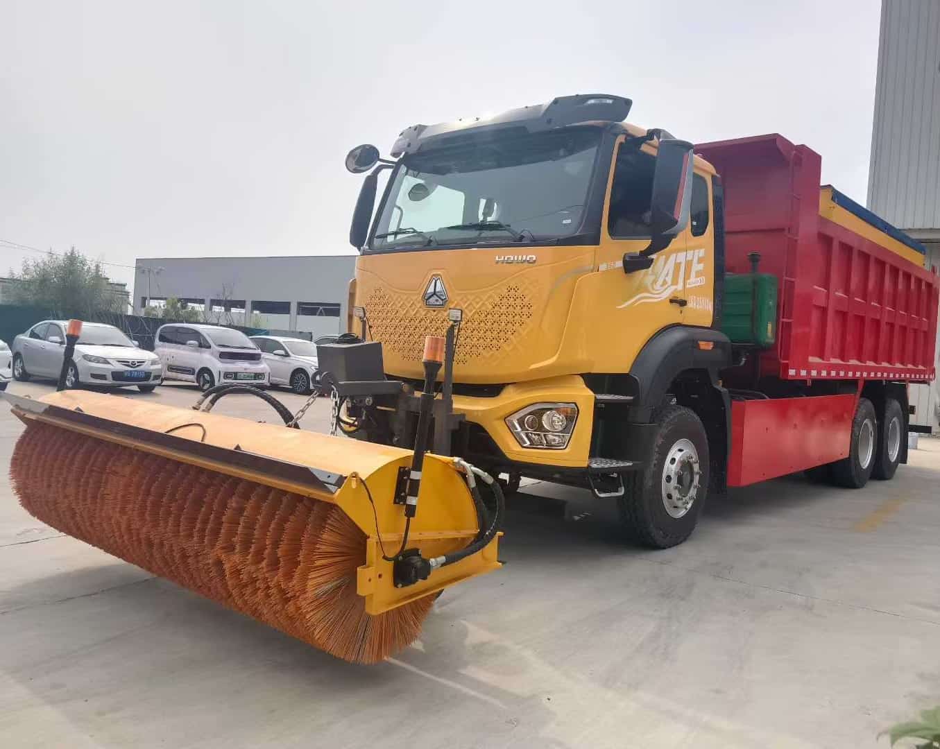 匹配重汽底盘,曼机350马力,豪沃10档变速箱,11.00R20钢丝胎,曼机13吨级后桥、 空调、 中控锁 、电动门窗、 遥控、 钥匙、 ABS 。上装由箱体融雪撒布机、 除雪滚刷 、除雪铲(选装破冰机 中置除雪滚刷 热熔水箱)整车操作简便 作业范围广 机动 灵活 效率高