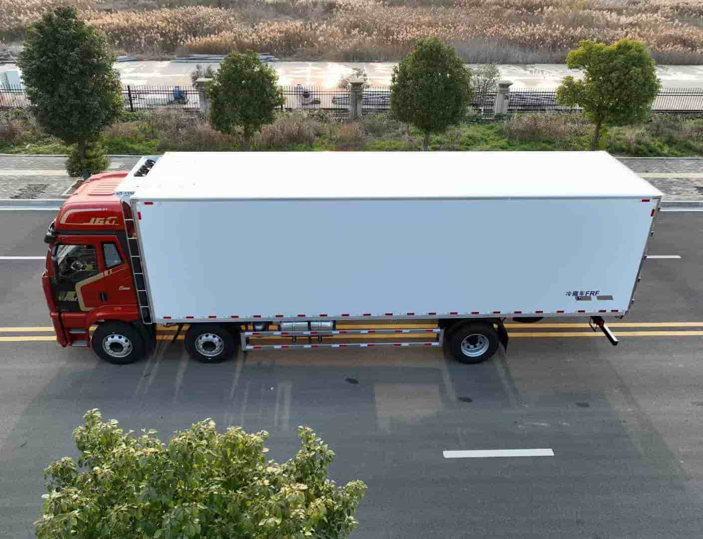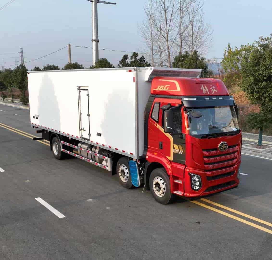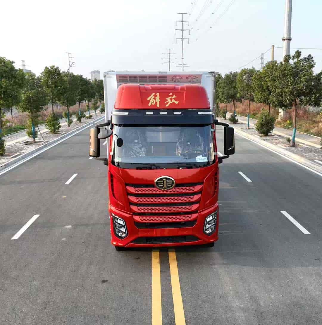 2025款J6G领航版全浮高顶排半平地板驾驶室、多功能大角度方向盘、十寸大屏集成四方位影像、智能语音控制、手机支架、10档变速箱、彩色仪表、电动玻璃升降、中控锁、电动电加热一体式后视镜、驾驶员座椅为真皮通风座椅(气动腰托、双扶手)、12R22.5型18层级无内胎(低滚阻)、600L铝油箱、驾驶室四点空气悬置、电动液压举升、悬架3/3/4+3、速比:3.909.