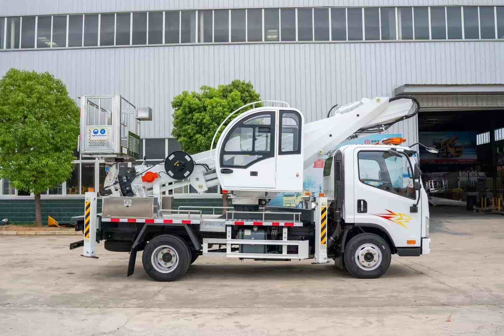 上装:3节18边形宝钢大臂,双向360度连续回转,1.6米不锈钢吊兰,带圆弧型驾驶室,标配软腿保护,散热油箱,爆闪警示灯。