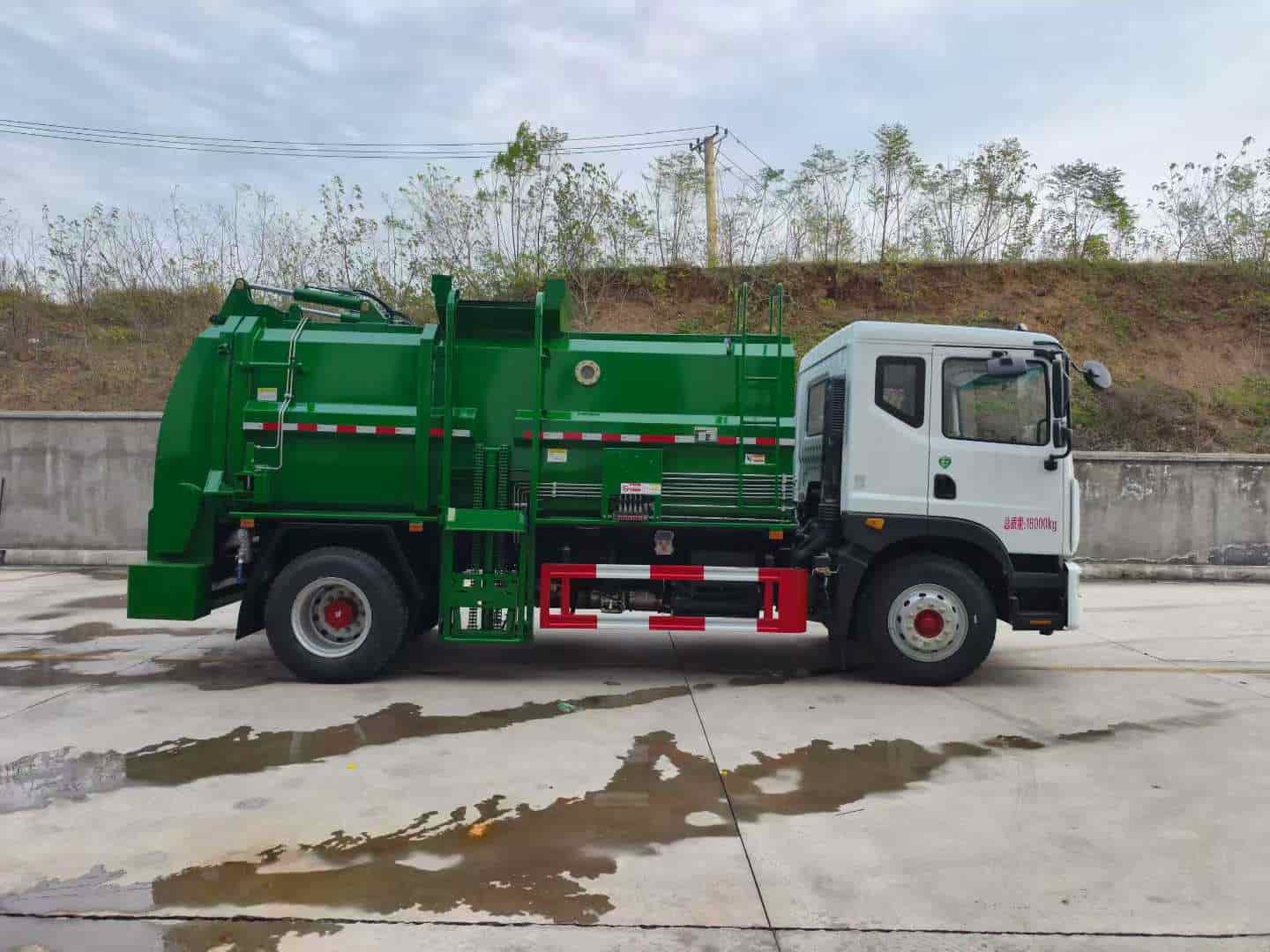 箱体采用Q355高强度锰钢制作,总容积约13立方米; 推铲卸料(不带举升功能);具有干湿分离功能(过滤网不锈钢冲孔);国内知名品牌液压系统(浙江嘉善取力器,合肥泵,中梅阀,国产油缸);
