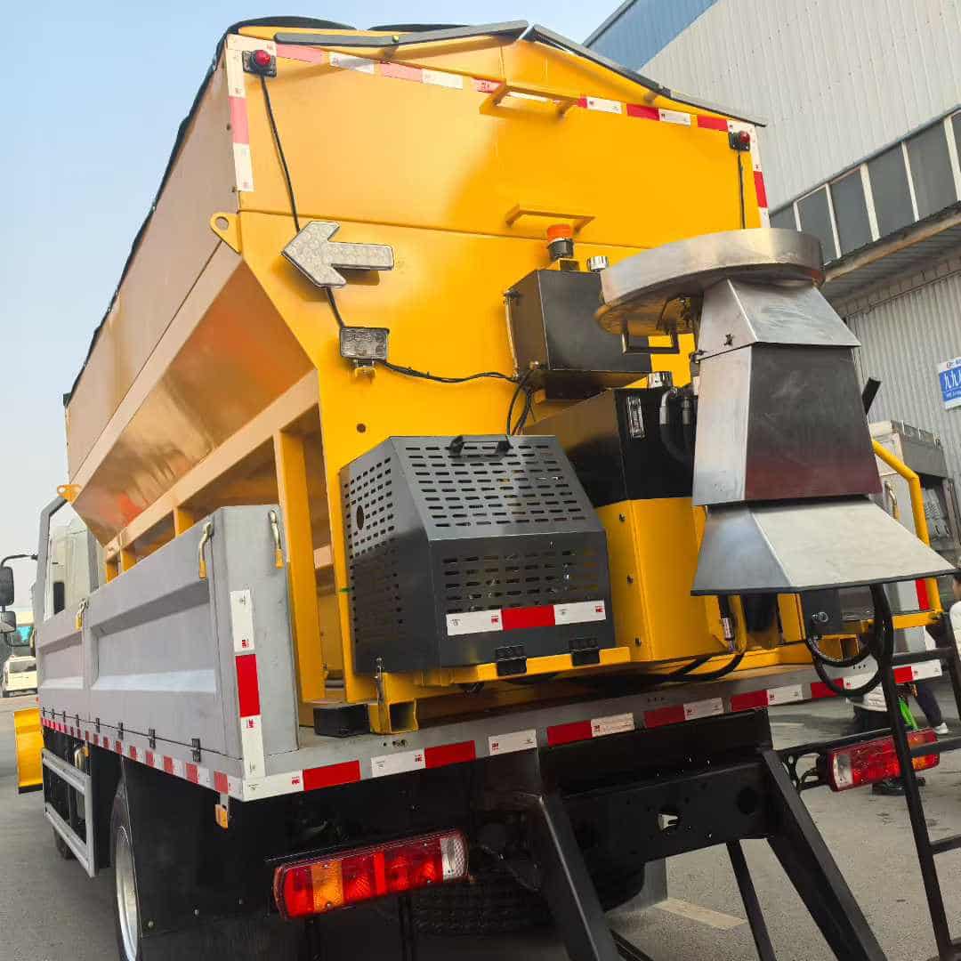 前置搭配3米推雪铲,箱体搭载12方融雪撒布机。