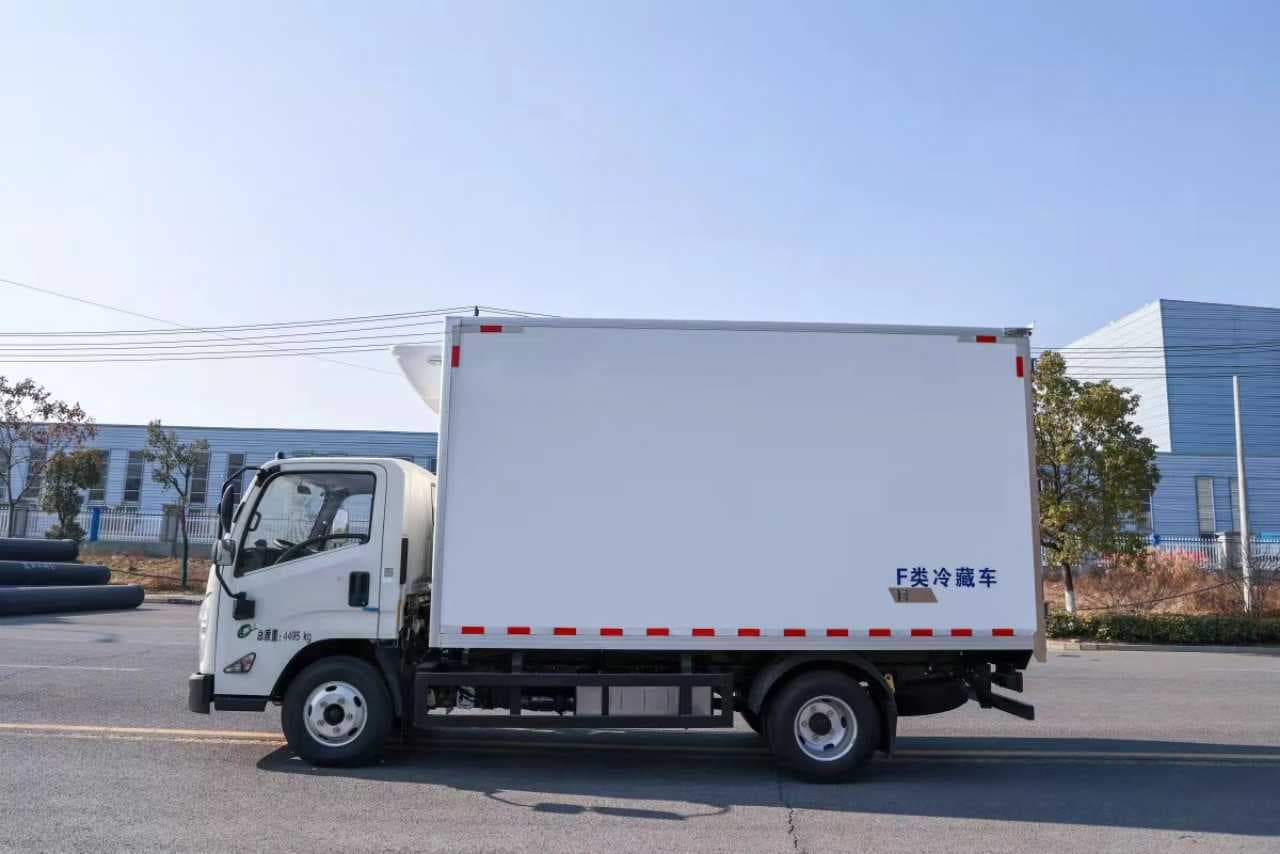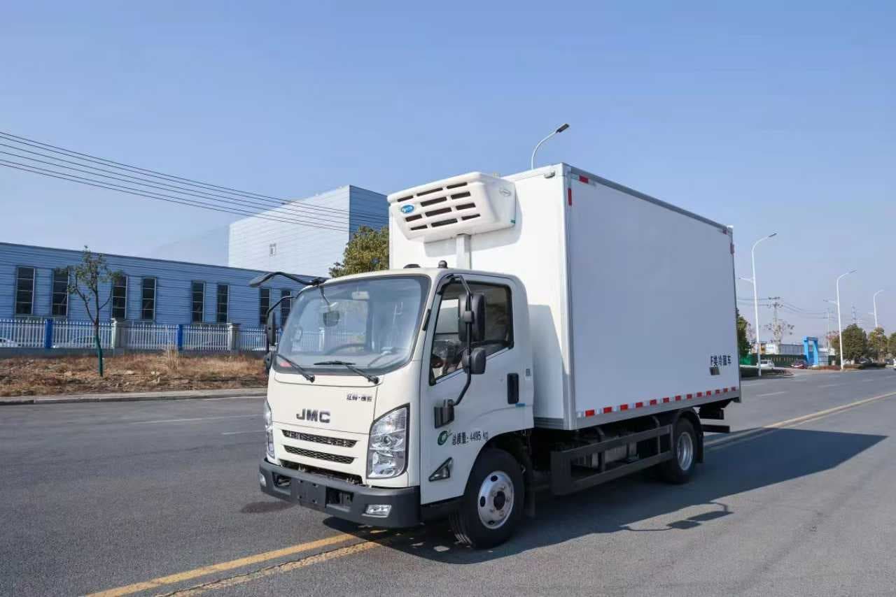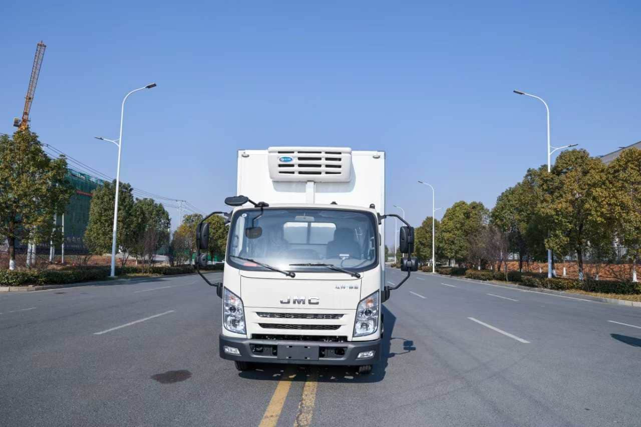 采用江铃凯运单排1880宽体驾驶室,轴距:3360mm, JX493ZLQ6A发动机 ,德国格特拉克5档变速箱,气刹、排气制动,7.00R16钢丝轮胎,ABS,方向助力,电动车窗,中控锁,可调节方向盘,发动机燃油预热,83L油箱,原厂空调带冷藏车专用压缩机双支架。底盘零部件采用国际一线供应商配套保障运行稳定可靠。