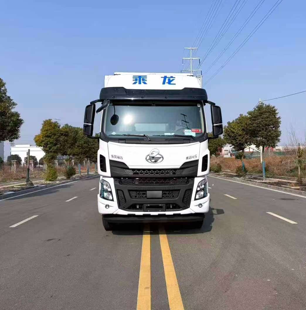 柳汽乘龙H57驾驶室、机械全浮式驾驶室悬置、液压机械翻转、法士特10档变速箱、7寸MP5+倒车影像、自动空调、多功能方向盘、定速巡航、整体式电动加热后视镜、12R22.5轮胎、2*4.5T前桥、后桥400/4.444/加宽制动器、板簧3/3/-、264(6)车架。
