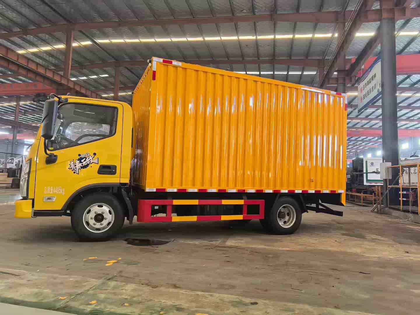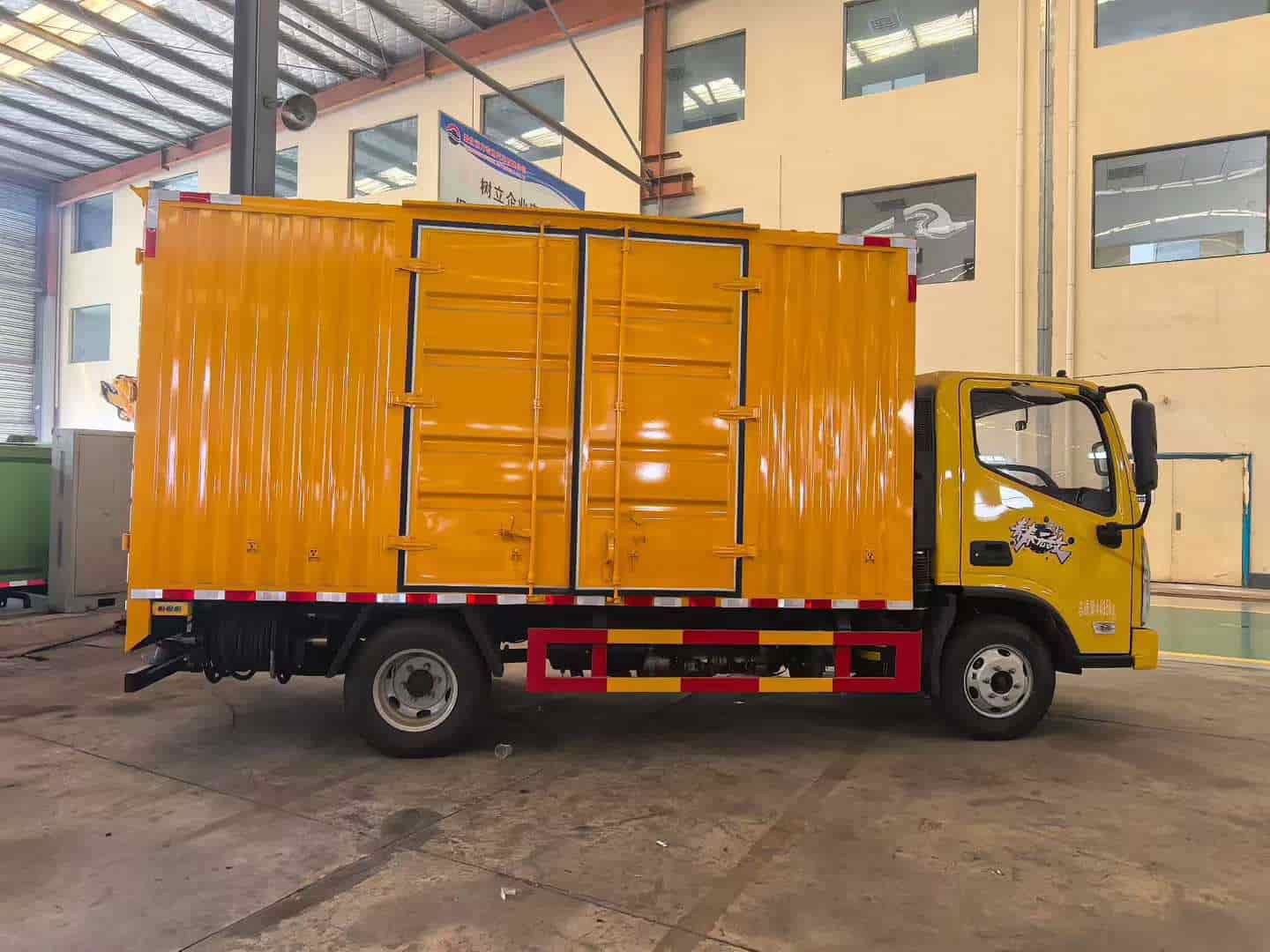 采用箱式车体,副驾侧双开门,后尾部双开门,整车颜色为工程黄。