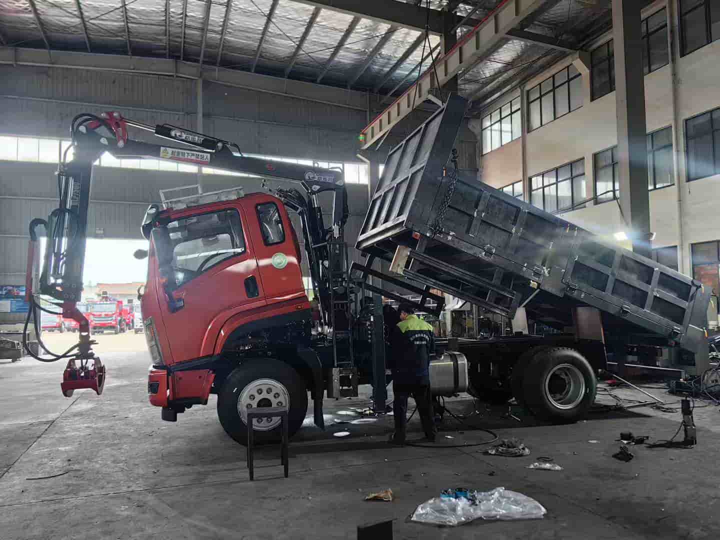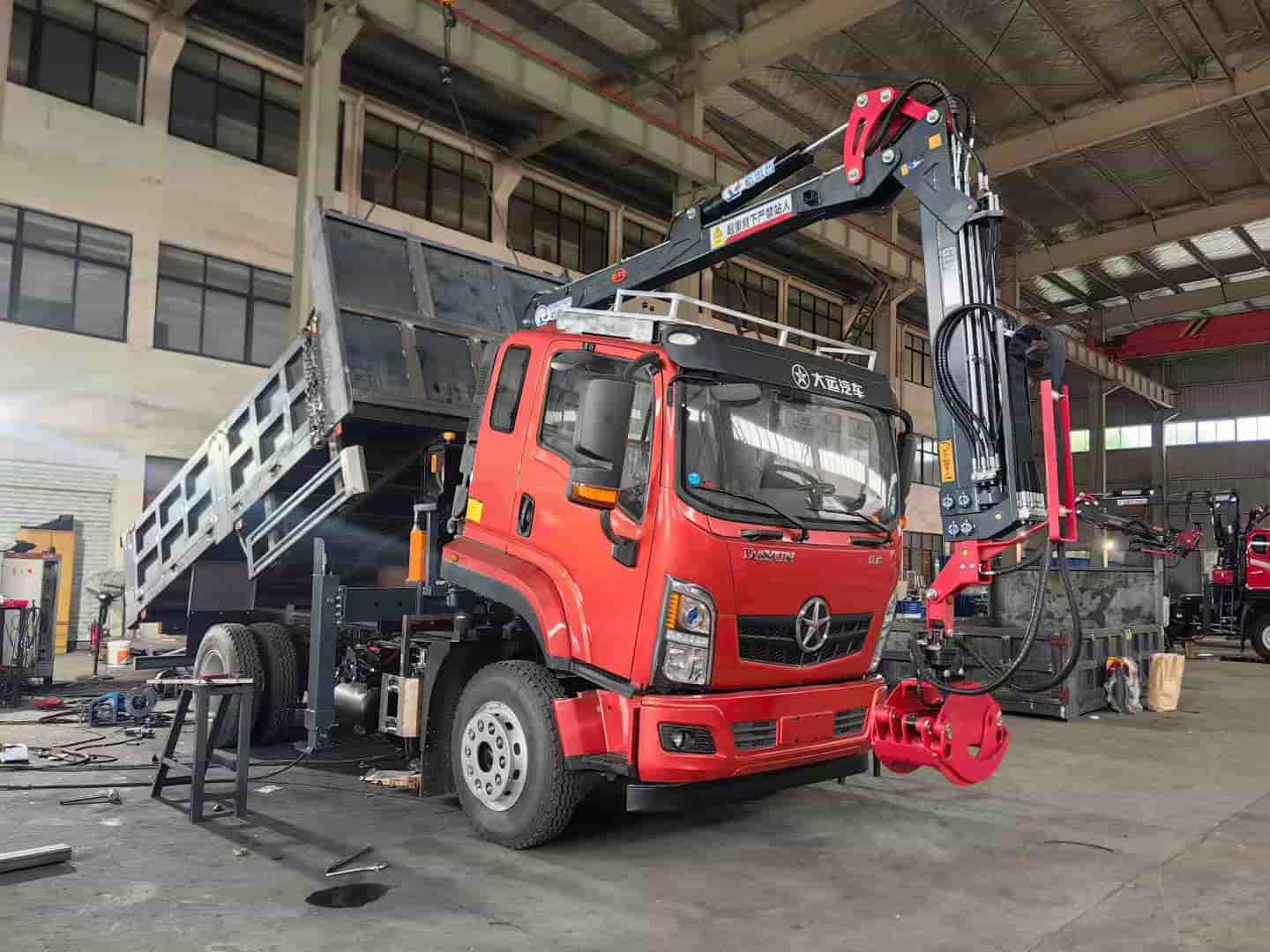 3900轴距,玉柴180,153后桥,上装配格雷普7米5抓机,4米5高强钢自卸车厢,竹木抓车废品回收好帮手