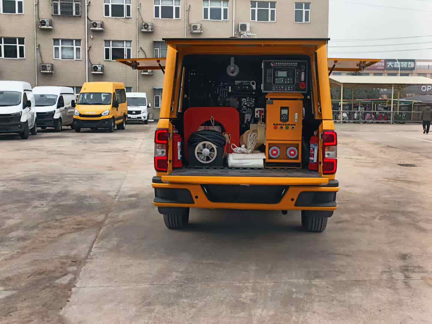 扬晟专汽有各种应急保障车型:排水车,排水机器人,应急电源车,指挥车,消防车,除雪车及除雪设备,宿营车,淋浴车,厕所车,被服洗涤车,餐饮车(炊事车),后勤保障车,救险车,大流量排水抢险车,道路检测车,指挥车,电源车,装备运输车,运兵车,通讯指挥消防车,器材消防车,舞台车,宣传车,流动服务车,净水车,器材消防车,发电照明车,消防冷藏车,装备模块车等应急保障车。