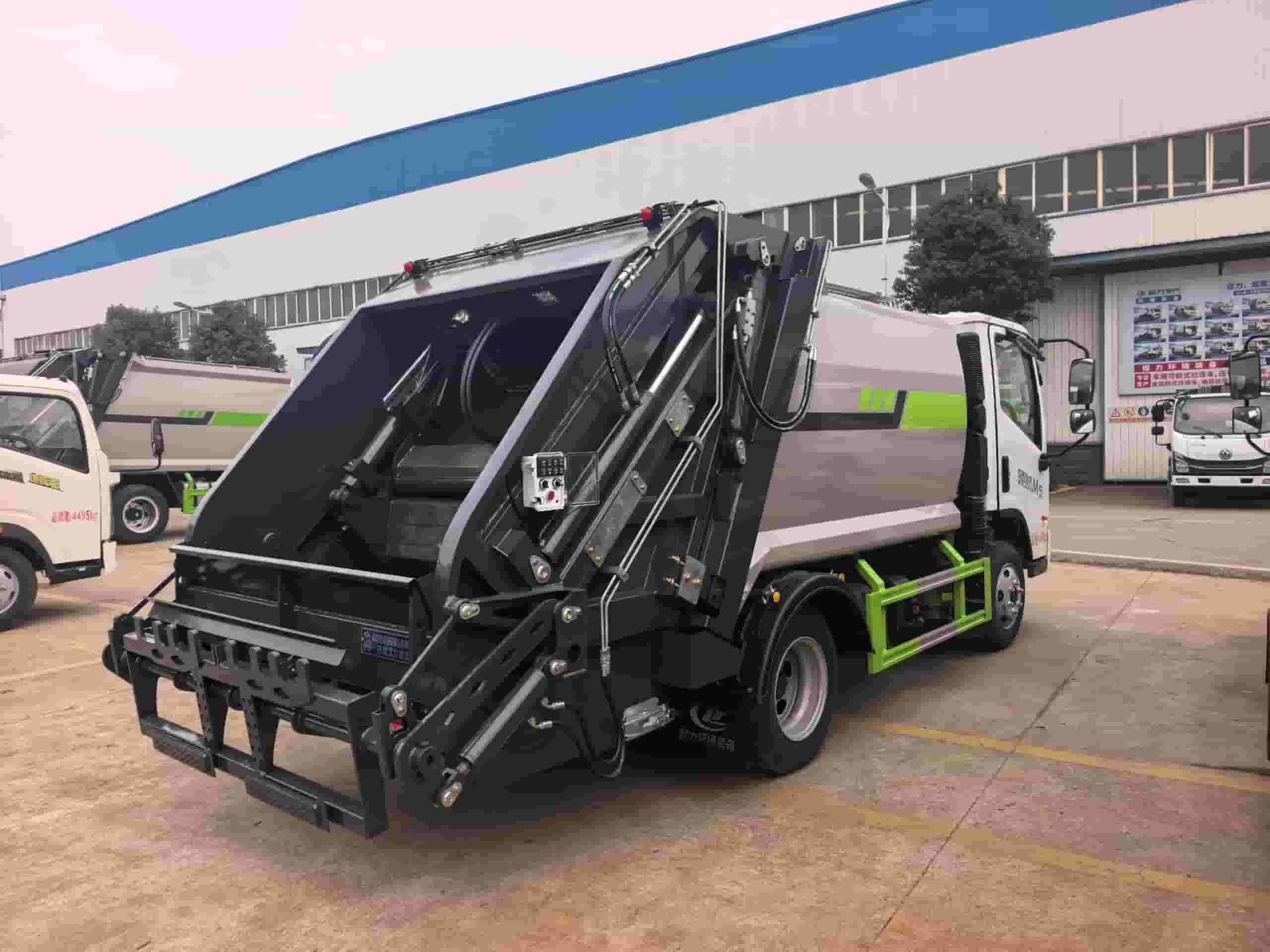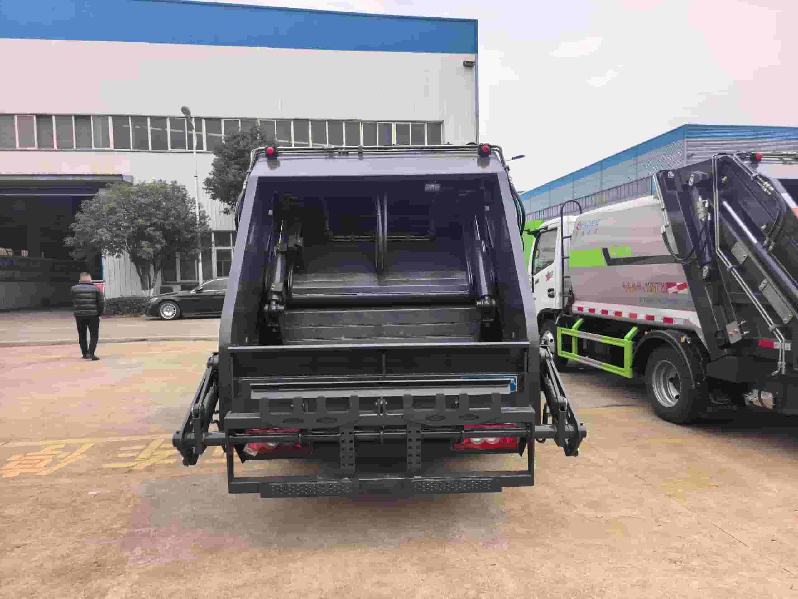 整车采用T700特种钢,弧形箱体新式可破碎刮板;双向蠕动压缩;后置污水箱;国内知名品牌液压系统,丰正取力器,河北睿辰齿轮泵,海普瑞斯多路阀,专用定制铭扬油缸;驾驶室内及车身外集中电控(CAN电控),尾部翻转桶机构(可同时翻转2个240L国标方形塑料垃圾桶);可选装三角斗机构。加装气动密封盖。