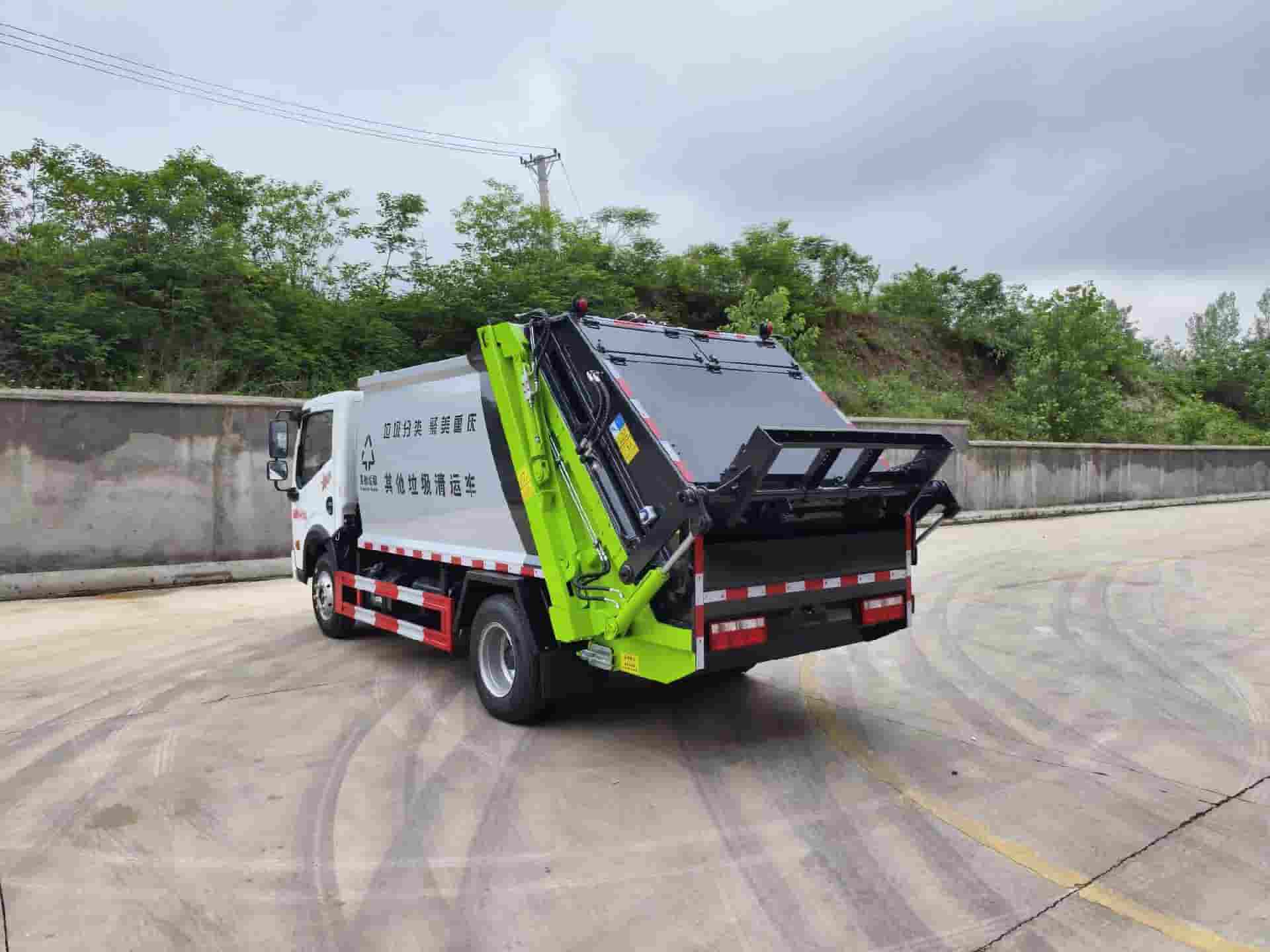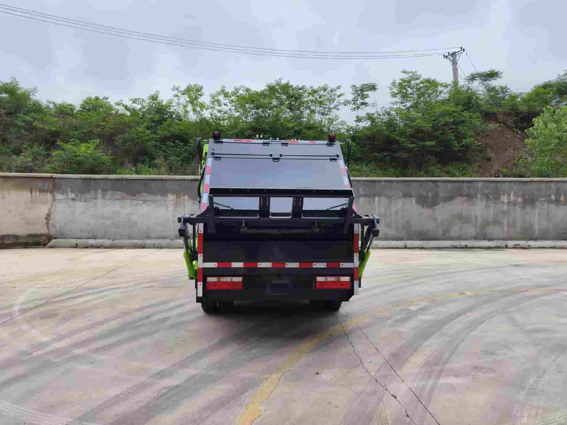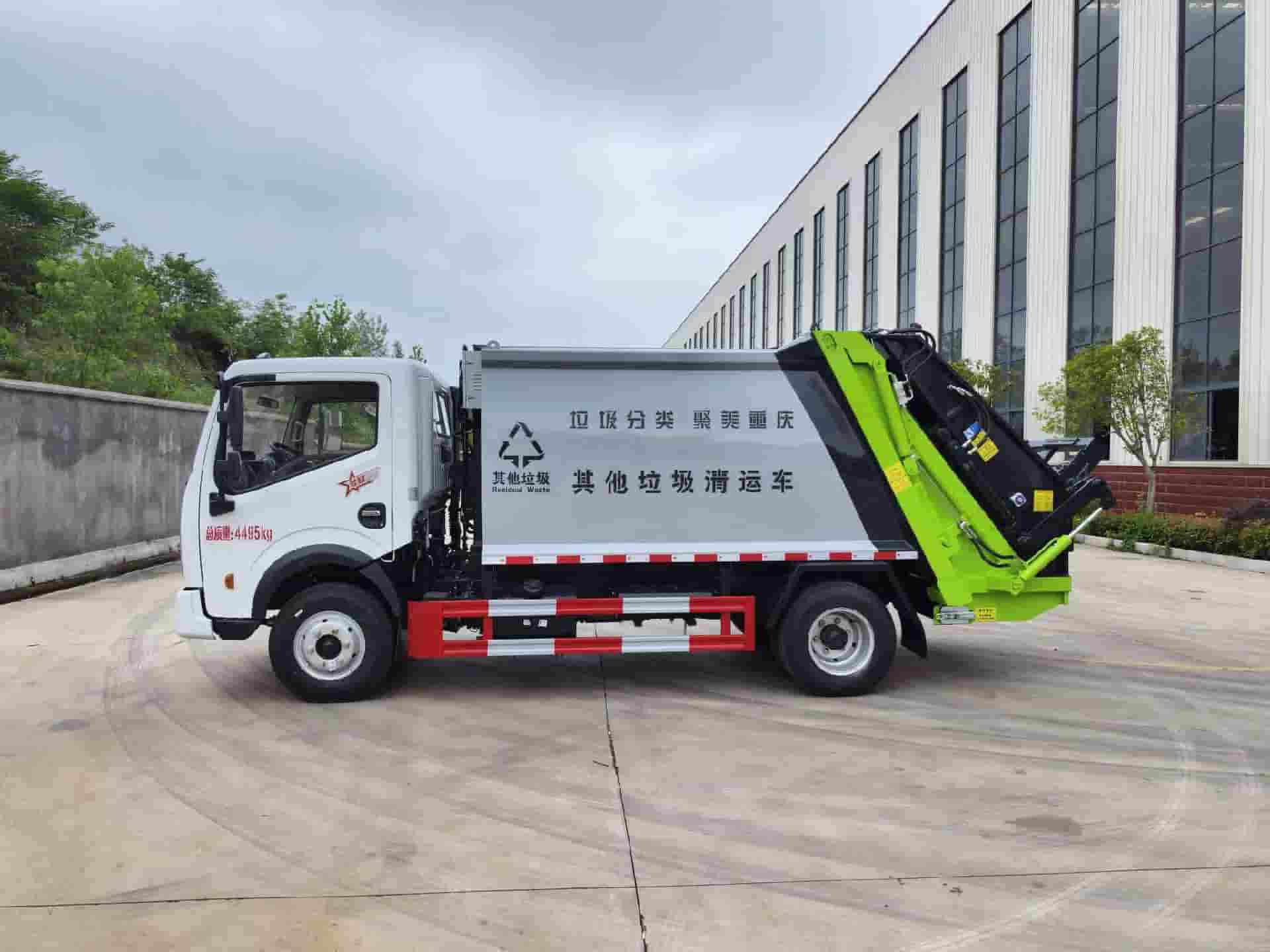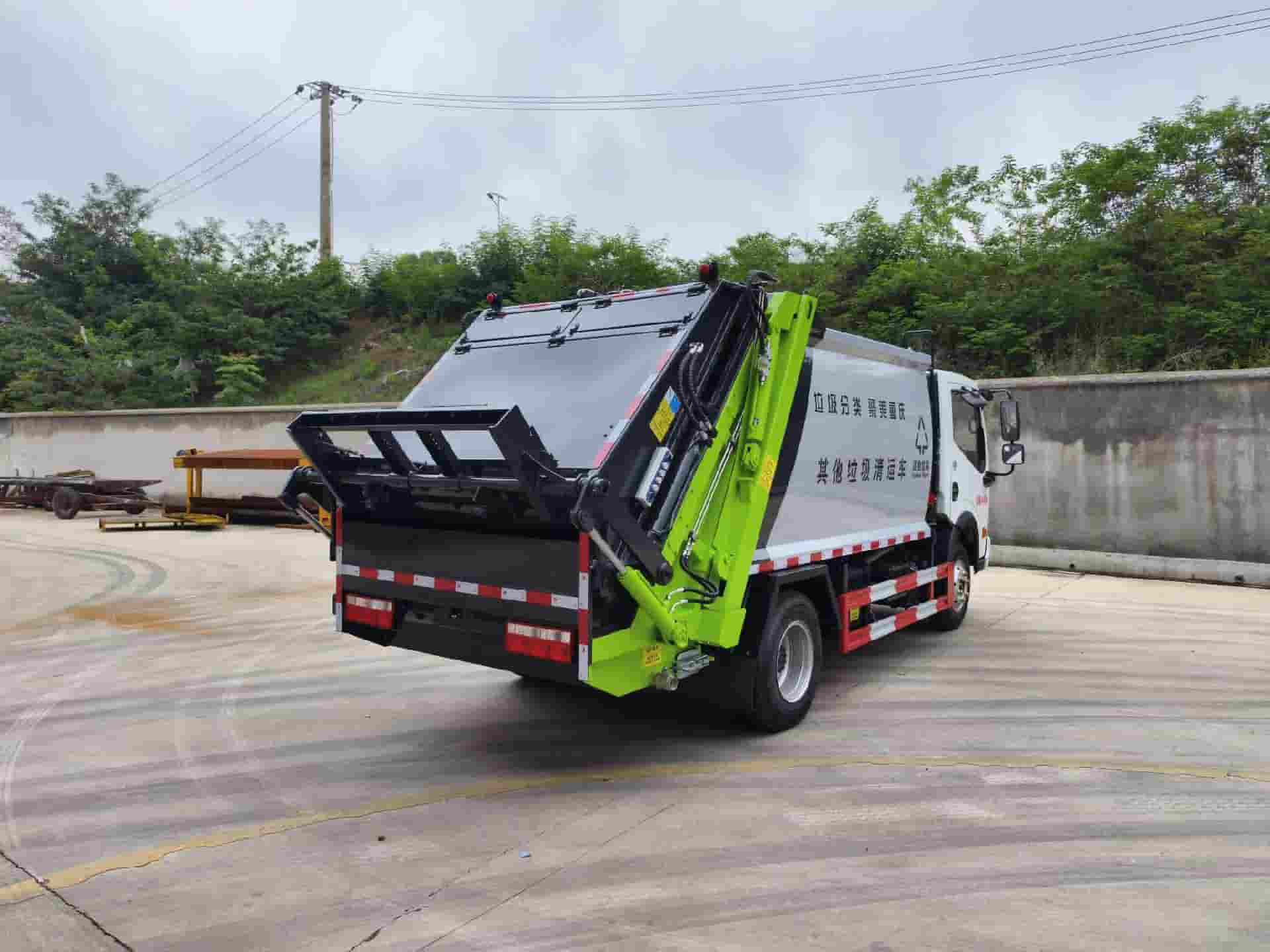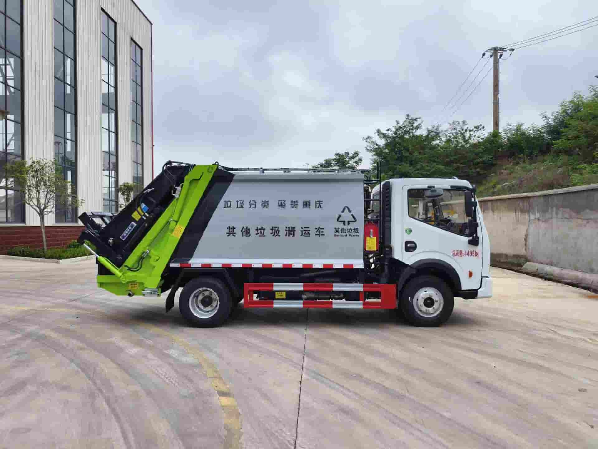 东风星云全柴143/162马力,3308轴距,万里扬6档变速箱,7.00R16钢丝胎,容积7.2立方,箱体采用Q355高强度锰钢,边4mm底4mm,填充器圆弧板8mm,滑轨8mm,福建山友定制油缸,中梅多路阀,合肥油泵,采用台湾三菱PLC总线电控系统,尾部挂两个240升国标垃圾桶。