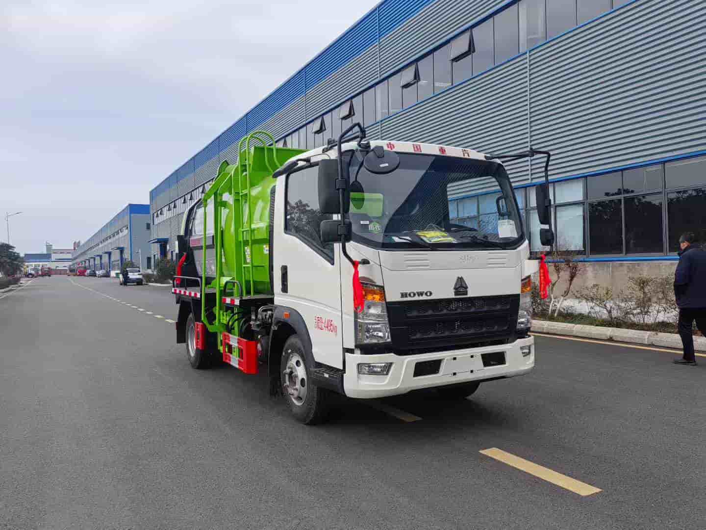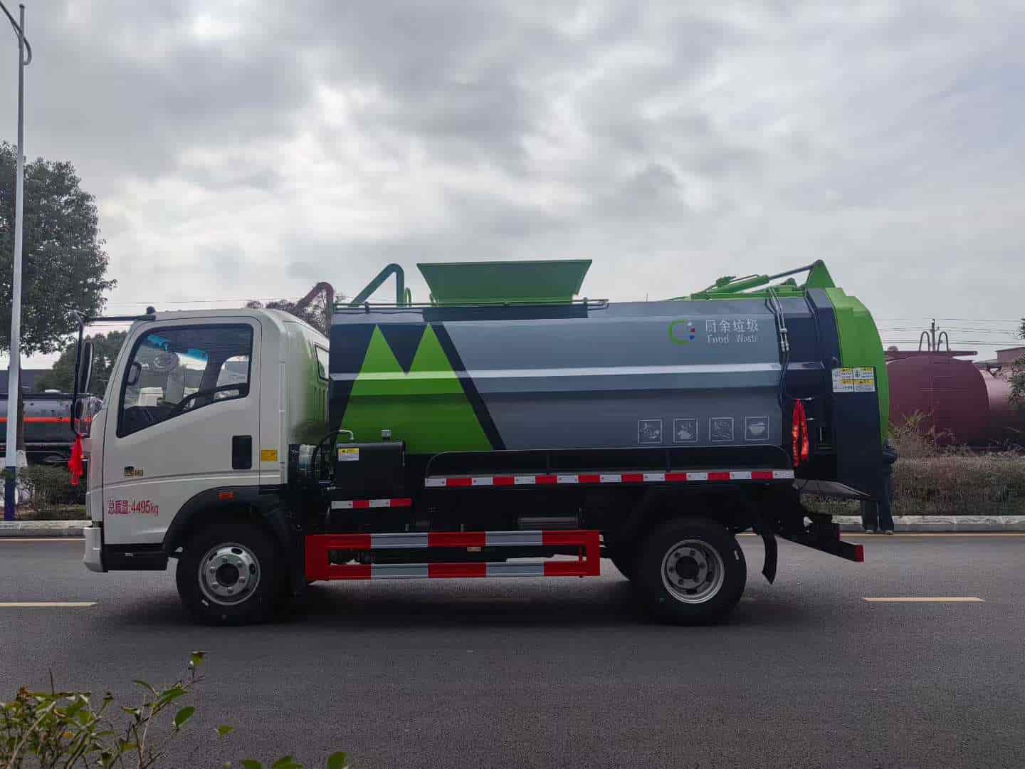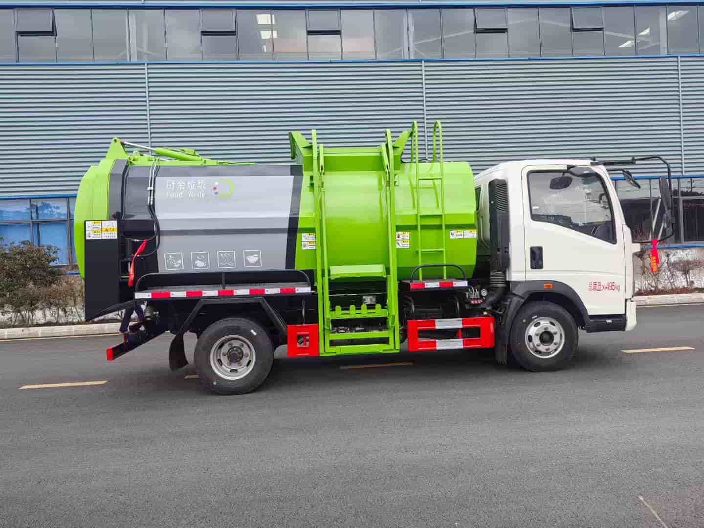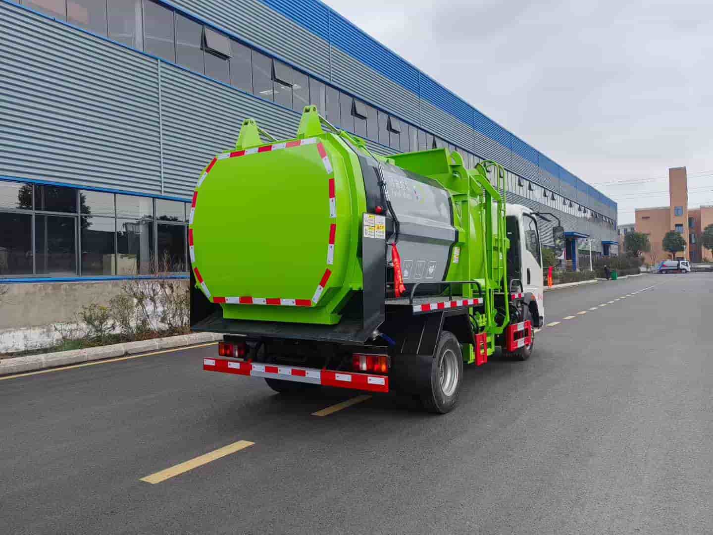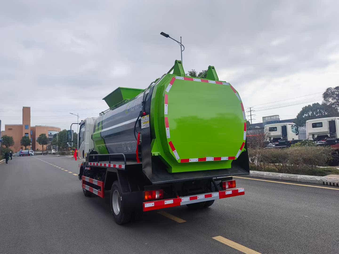 潍柴151马力/潍柴140马力,标配举升卸料,尾门液压开启液压锁紧,可以挂120升和240升垃圾桶