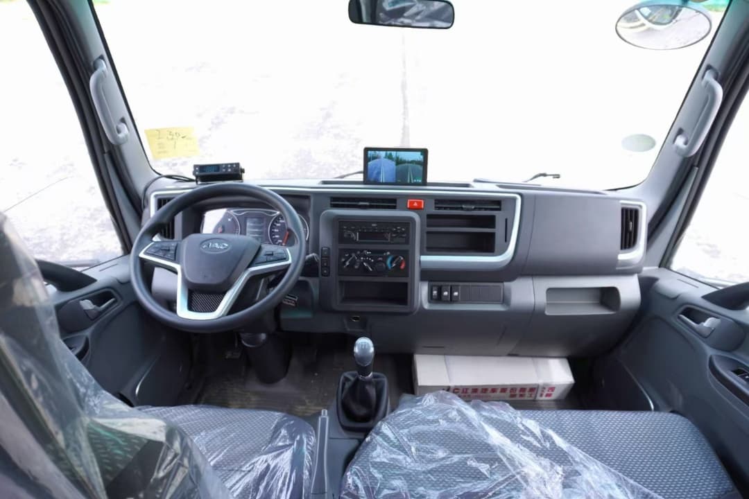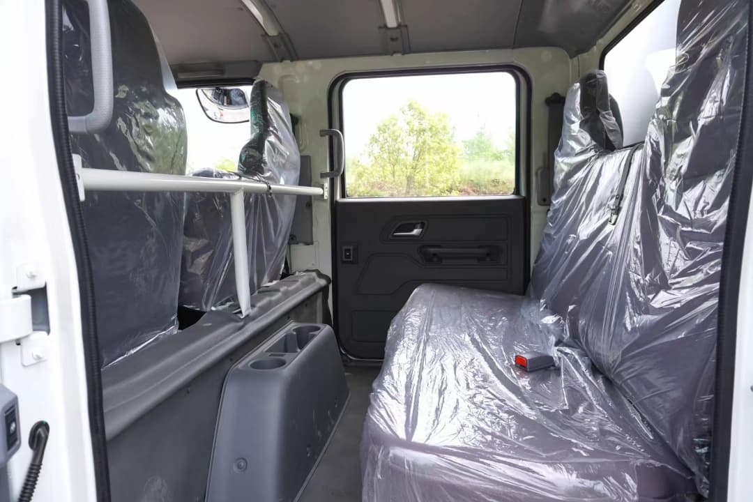 1720mm驾驶室、多功能方向盘、定速巡航、 电加热后视镜 、动力转向,中控锁,电动门窗、星锐5档变速箱 、7.00R16真空胎、110L油箱、气压鼓式、断气刹、前后桥:2T/4T、钢板弹簧: 4/5+6 、12V双电瓶。
