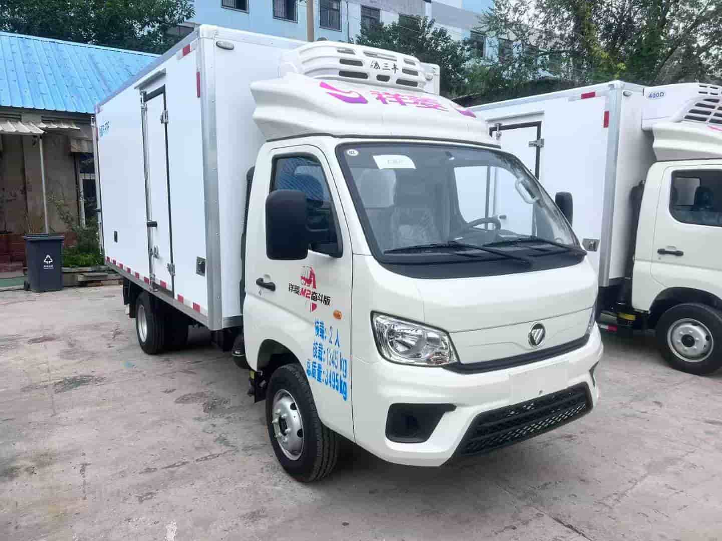 车辆配置:中控钥匙,电动门窗,原车驾驶室空调,转向助力,日间行车灯,东安2.0排量发动机,144马力。真皮座椅,倒车影像。轮胎185R14LT,6PR,额定载质量1345kg,92汽油发动机,箱体板厚8厘米,箱体内外玻璃钢,夹层高密度保温材料,不锈钢门框,不锈钢锁杠,箱内12VLED照明灯,12V三丰制冷机控制器,驾驶室空调采用134A冷媒。
