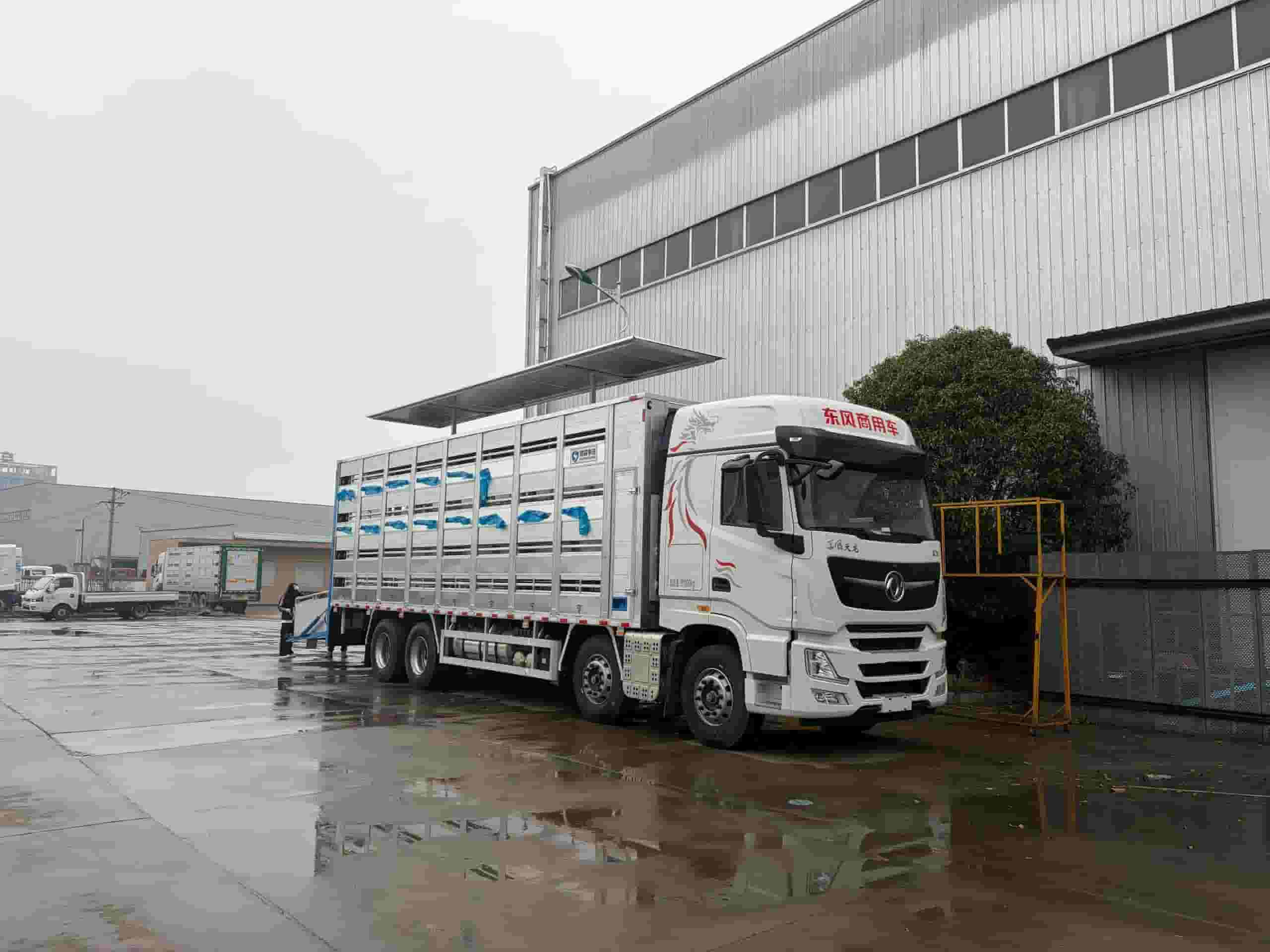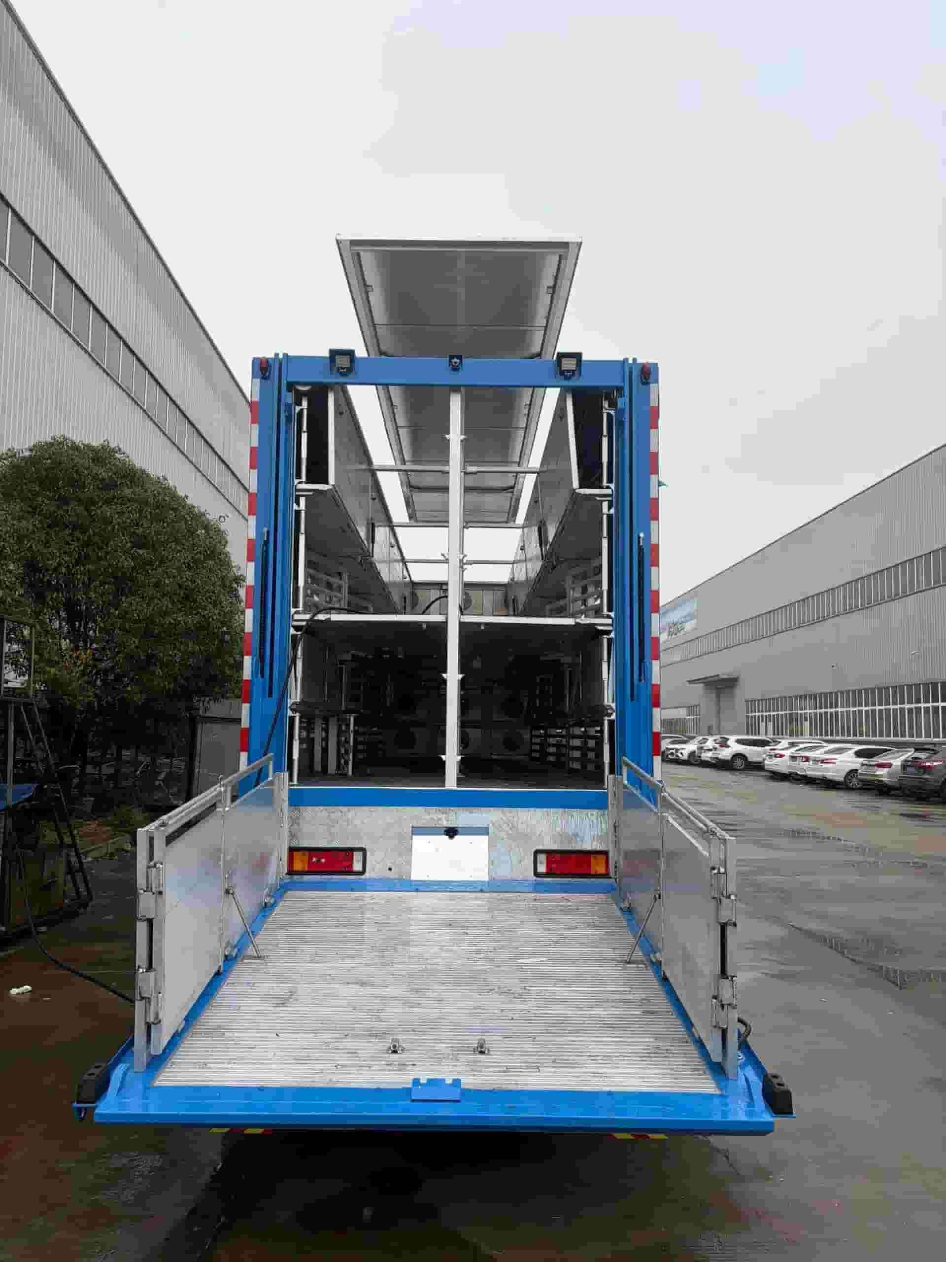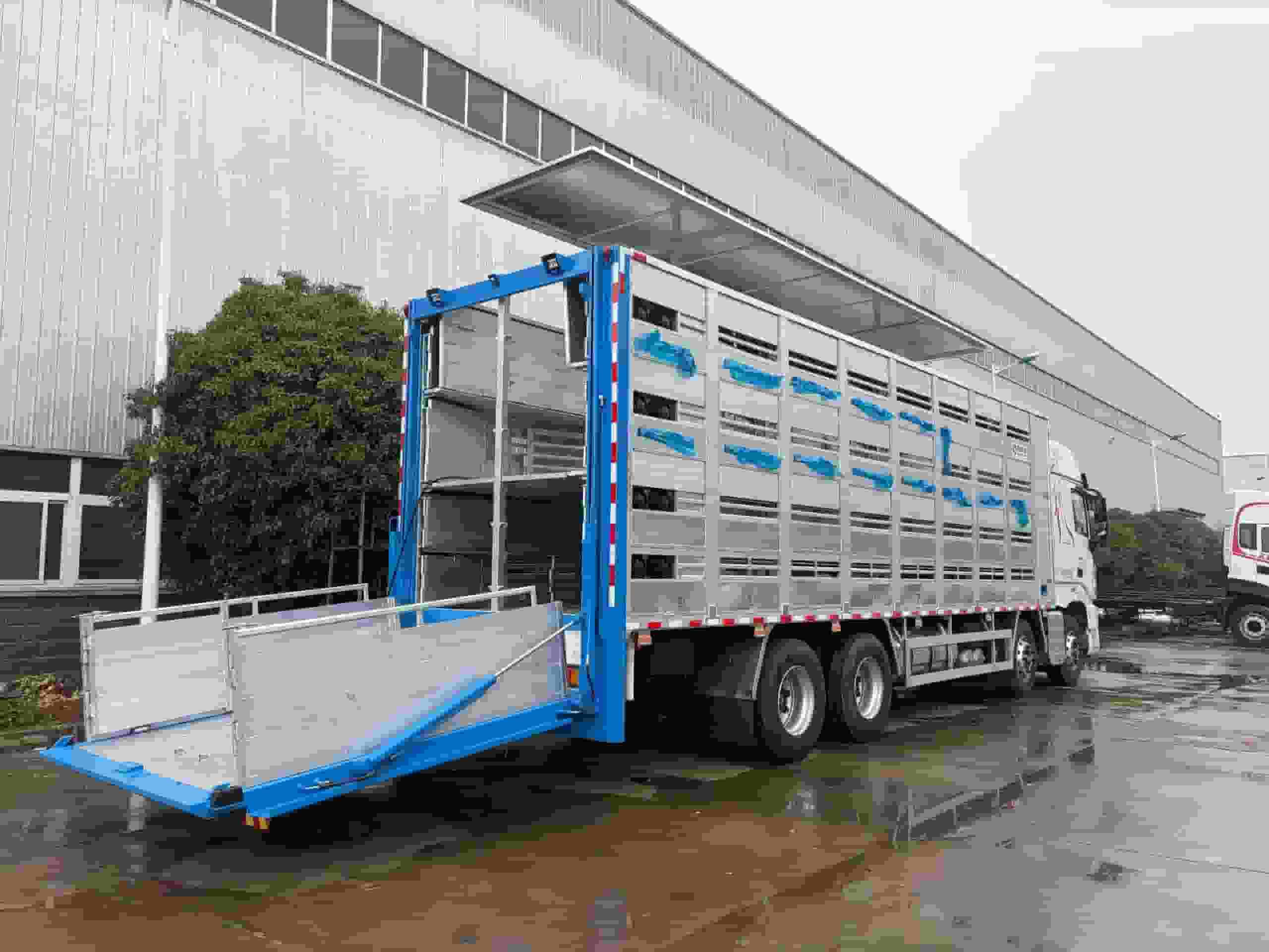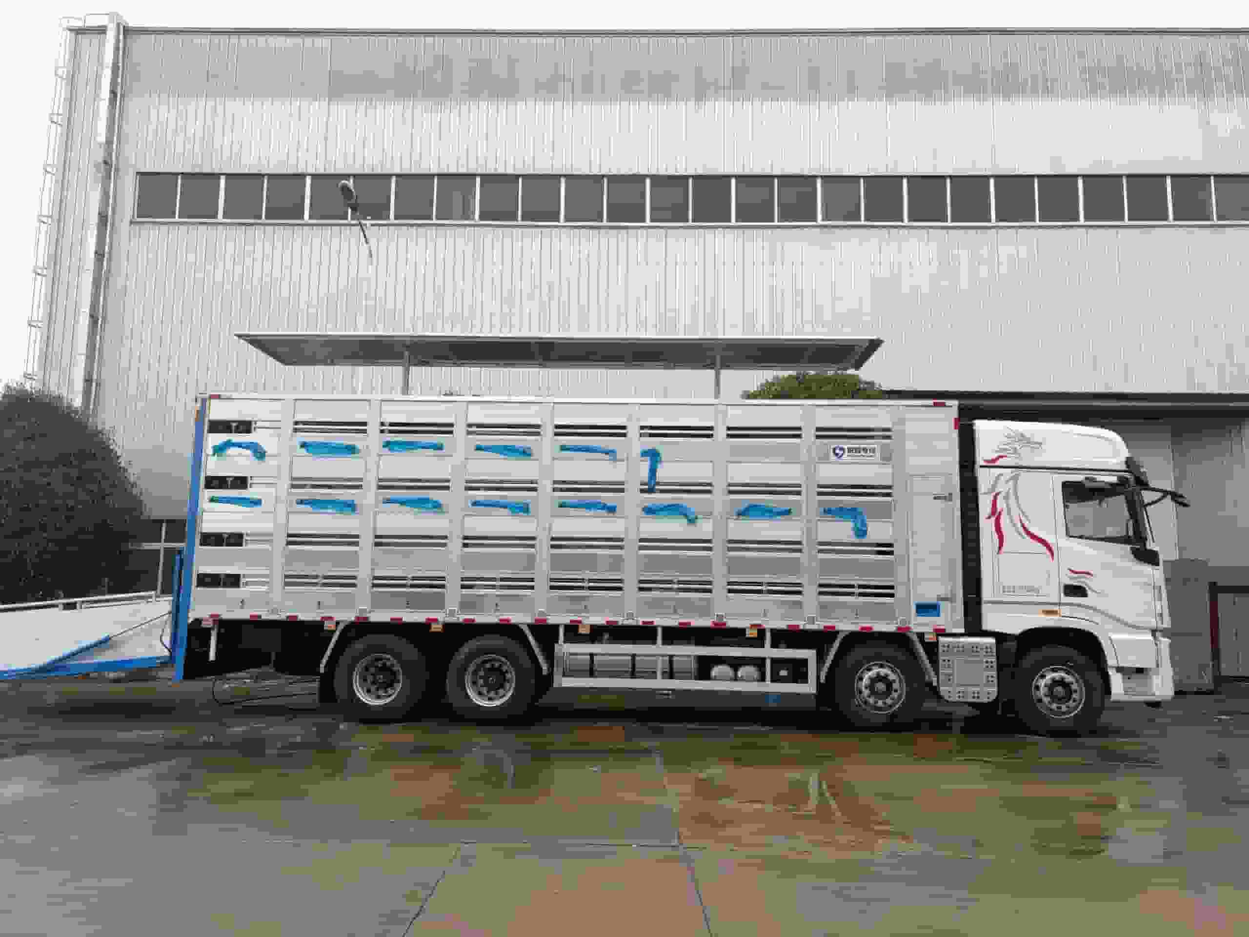龙擎520马力,全铝车身带液压升降尾板,中央空调,喂食、淋浴、喷洒、换气功能齐全,可定制2-4层适合不同阶段畜禽运输任务