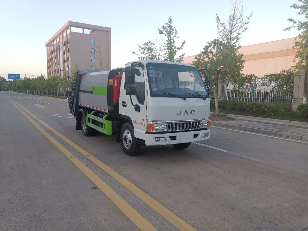 江淮骏铃E3环卫车专用底盘,驾驶室宽1720mm带前翻,2850mm轴距,全柴143马力2.3排量,5挡万里扬全铝壳变速箱,7.00R16钢丝胎,180大梁,钢板弹簧每侧11/9+7片,4.5吨后桥,断气刹,轿车化内饰,松芝冷暖空调,电动门窗,中控锁,动力转向,80升油箱,单电瓶12V,多媒体MP3,T-BOX。底盘型号:HFC1041P23K1C7ZS