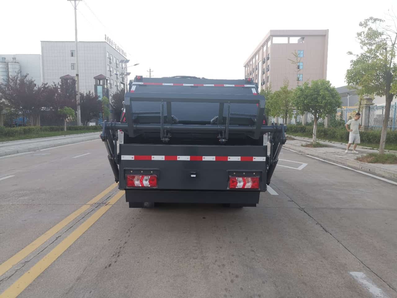 上装配置:弧形箱体,高强度钢板,容积5.5方,合肥皖液油泵,中梅大流量多路发阀,嘉善取力器,恒力油缸,进口PLC电控系统,一键操作,后部翻转结构,整车标配备压阀,带蠕动压缩功能,举升油缸标配双向平衡阀。