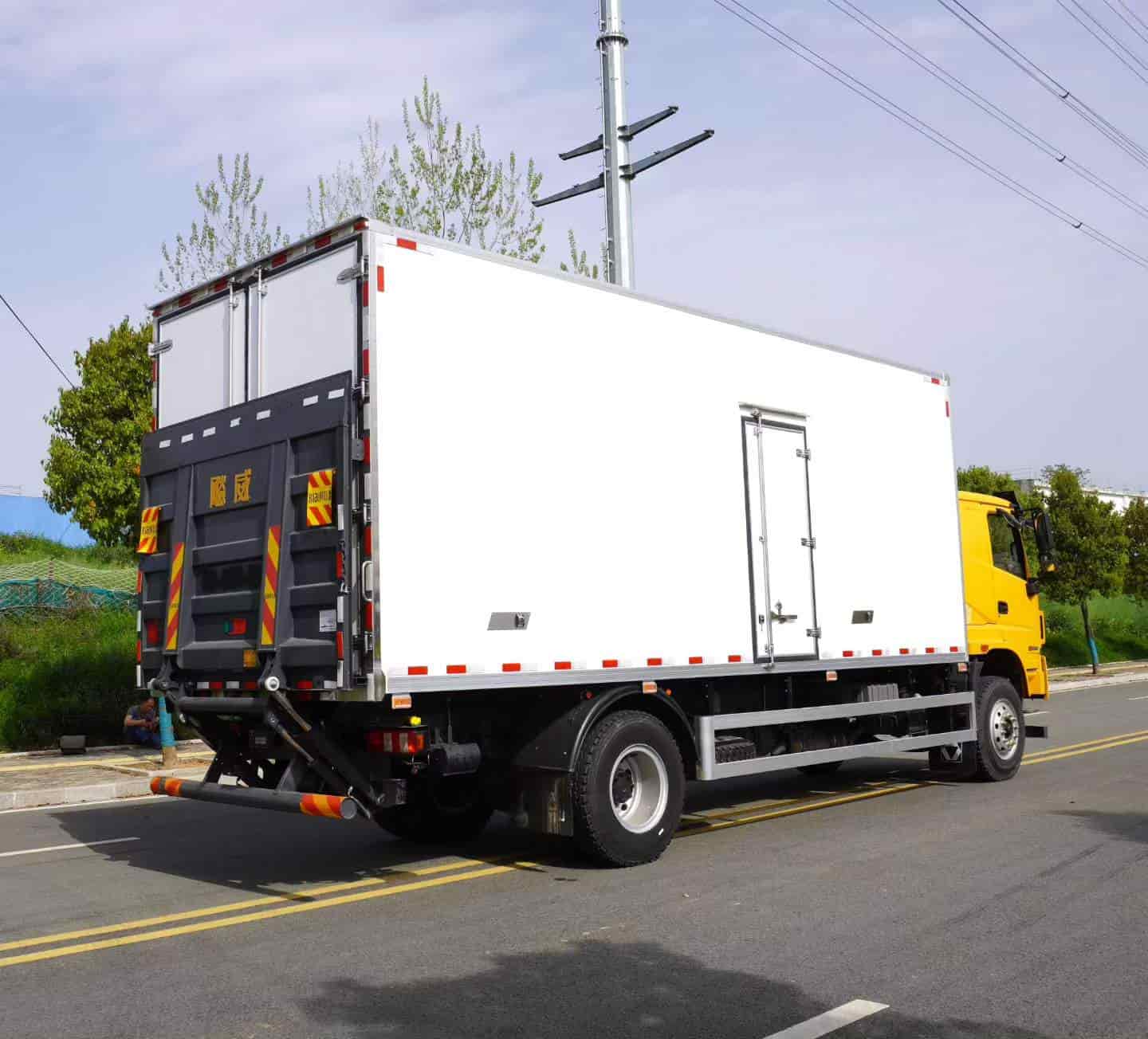 箱体配置:冷王T880 Pro制冷机组,T型满焊通风槽,箱体聚氨酯保温层,保温更耐用,箱内加装移动隔板,轻松实现多温区,加装飙威液压尾板,上下货物更便捷。