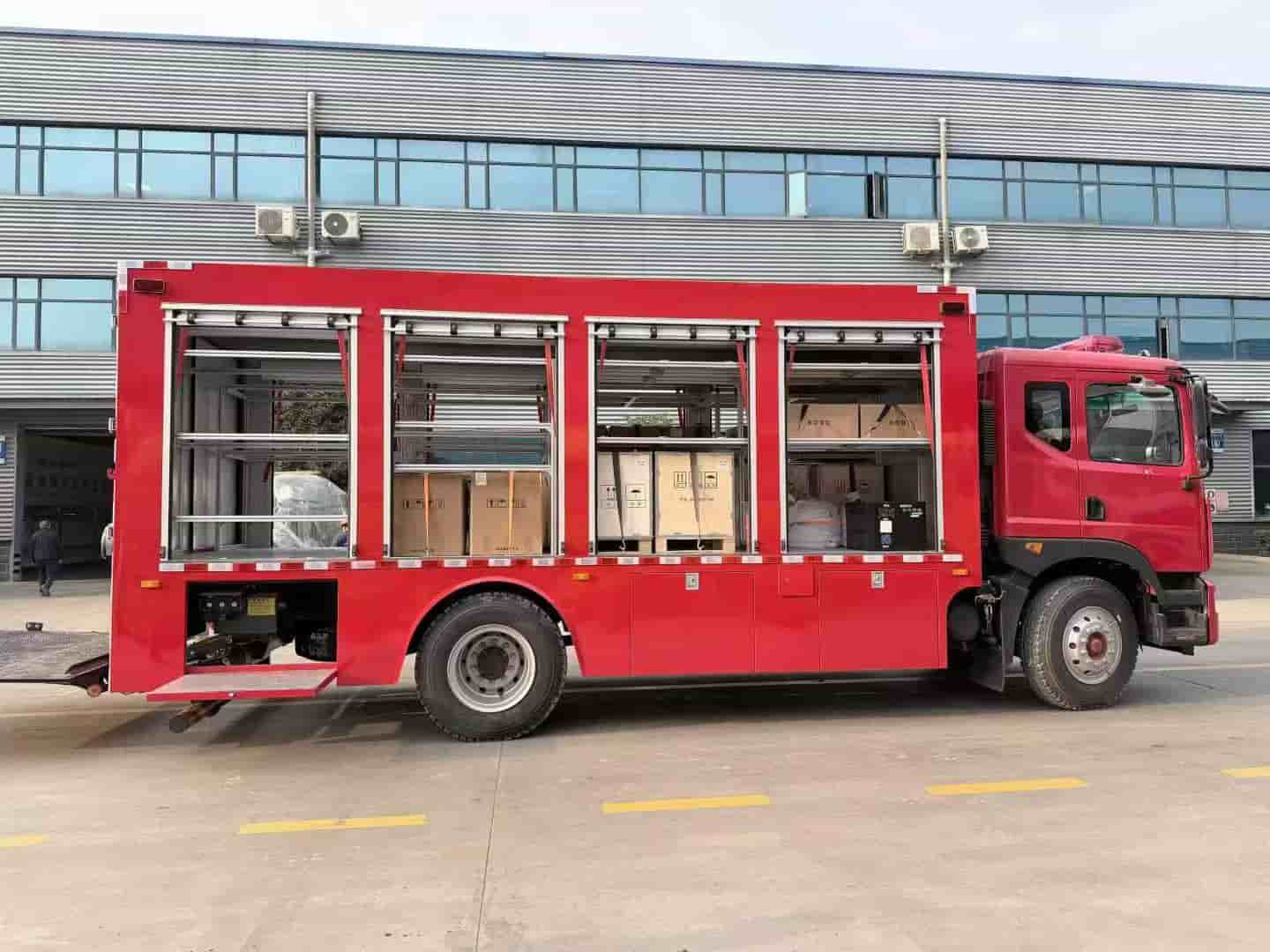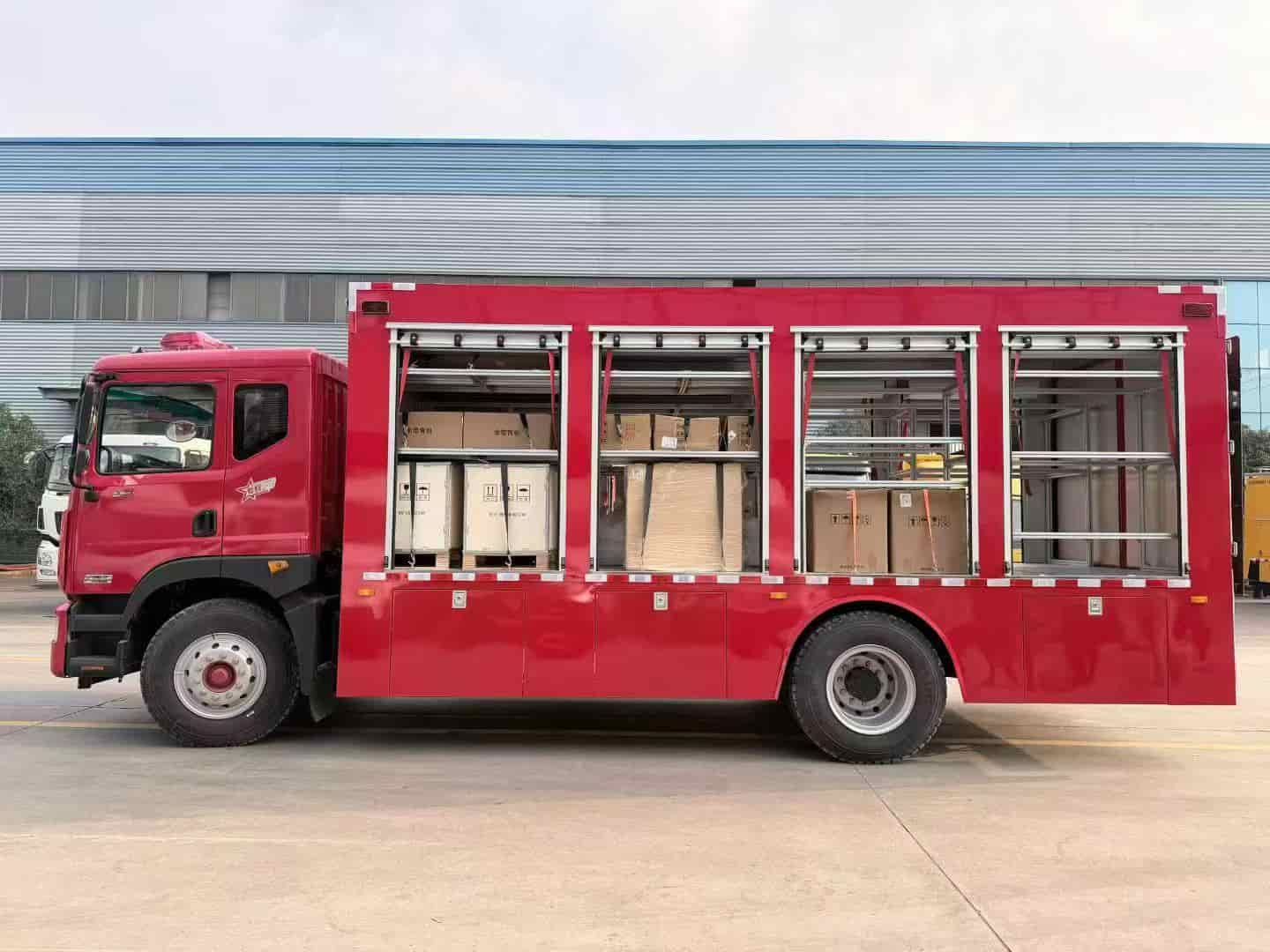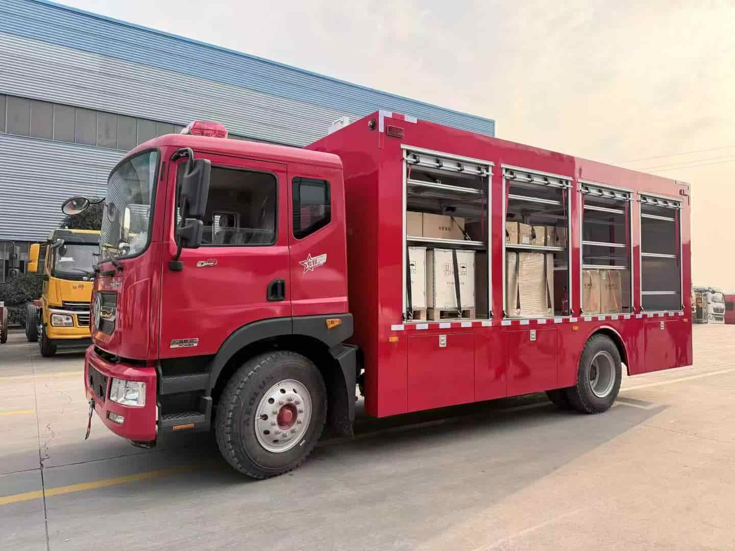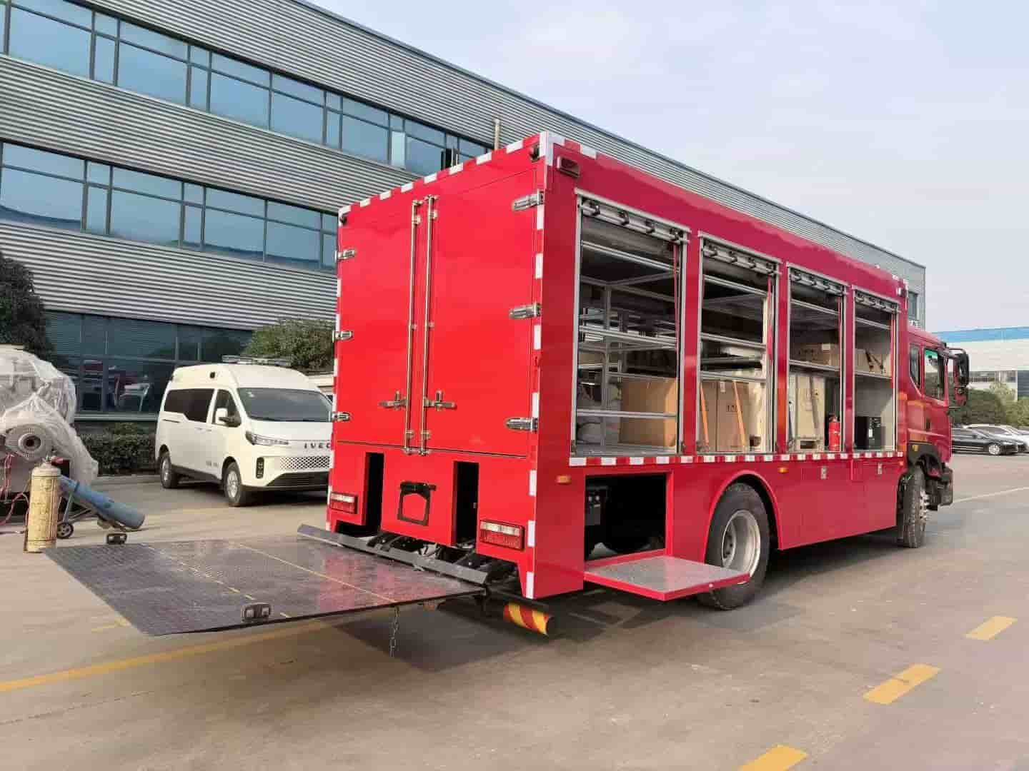 容量大,机动性强,配备液压升降尾板,操控方便,可运输专用救援器械、设备, 为现场救援人员提供有力保障;也可运送生活保障物资,以满足灾民在突发事件中的基本物资需求。