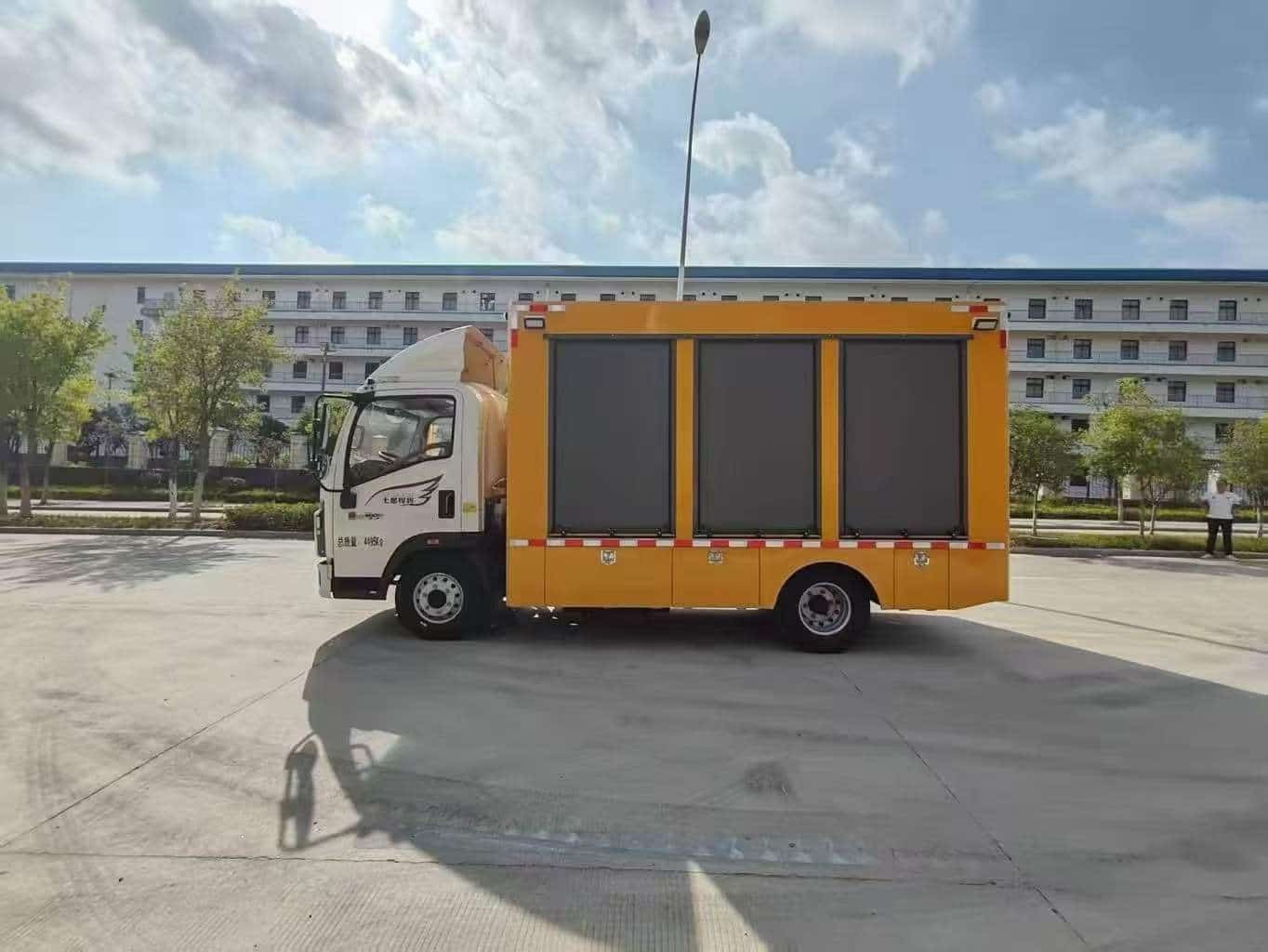 扬晟专汽有各种应急保障车型:排水车,排水机器人,应急电源车,指挥车,消防车,除雪车及除雪设备,宿营车,淋浴车,厕所车,被服洗涤车,餐饮车(炊事车),后勤保障车,救险车,大流量排水抢险车,道路检测车,指挥车,电源车,装备运输车,运兵车,通讯指挥消防车,器材消防车,舞台车,宣传车,流动服务车,净水车,器材消防车,发电照明车,消防冷藏车,装备模块车等应急保障车。
