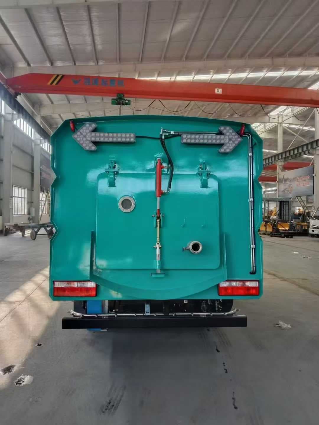 上装主要配置:1.带2个中置扫盘、江铃87马力副发动机、力沃马达、品牌高压水泵(前喷雾,侧喷,中喷,后喷雾/冲洗水枪/垃圾箱自洁装置);,万向高压路沿清洗喷头、碳钢防腐水箱、不锈钢垃圾箱;不锈钢管高压管路、法国控制器、美国传感器;尾部LED箭头灯;垃圾箱、水箱均带防自溢或低水位报警装置;洗扫状态室内监视器;15M高压冲洗卷盘。