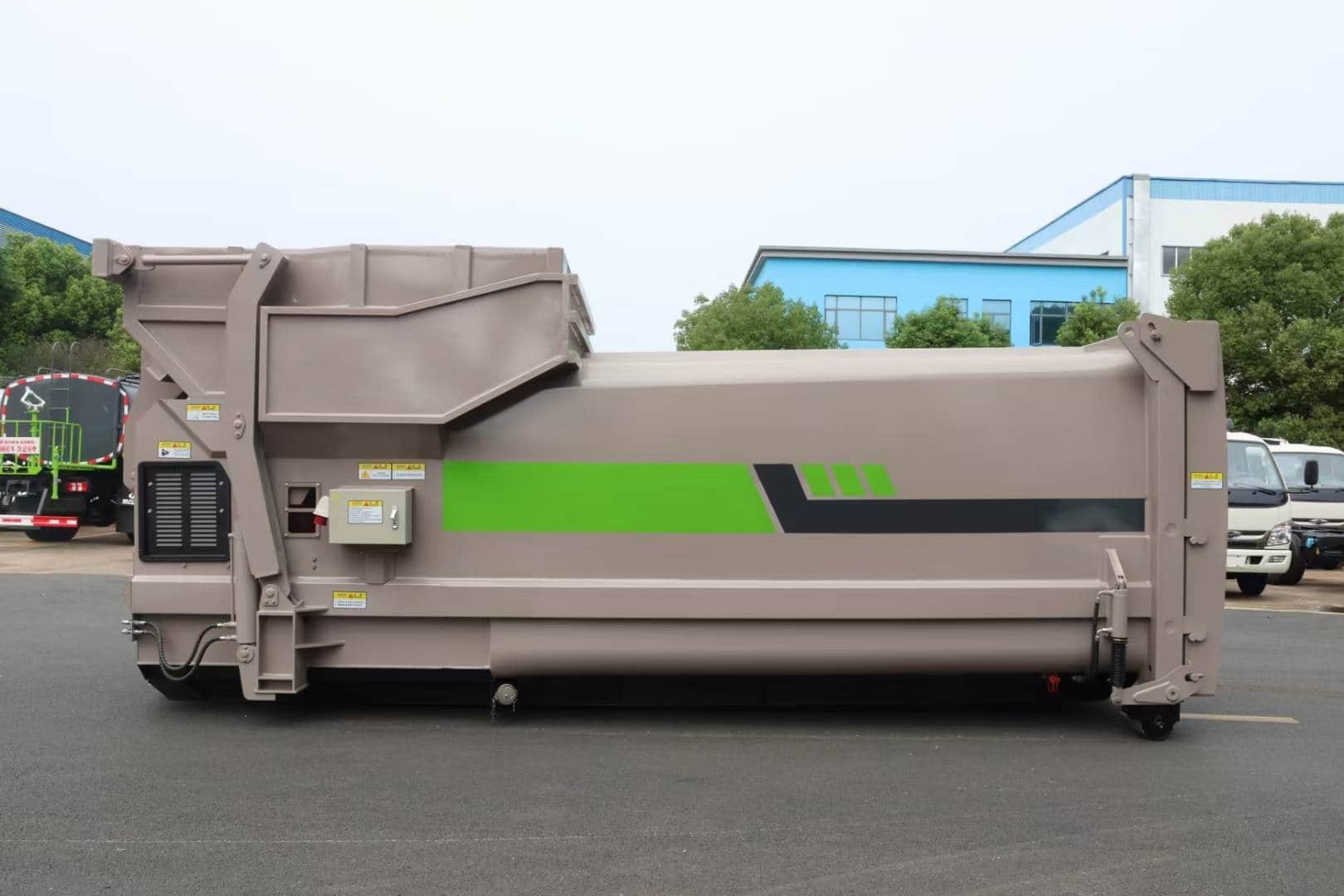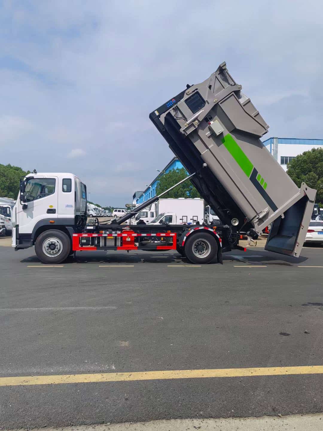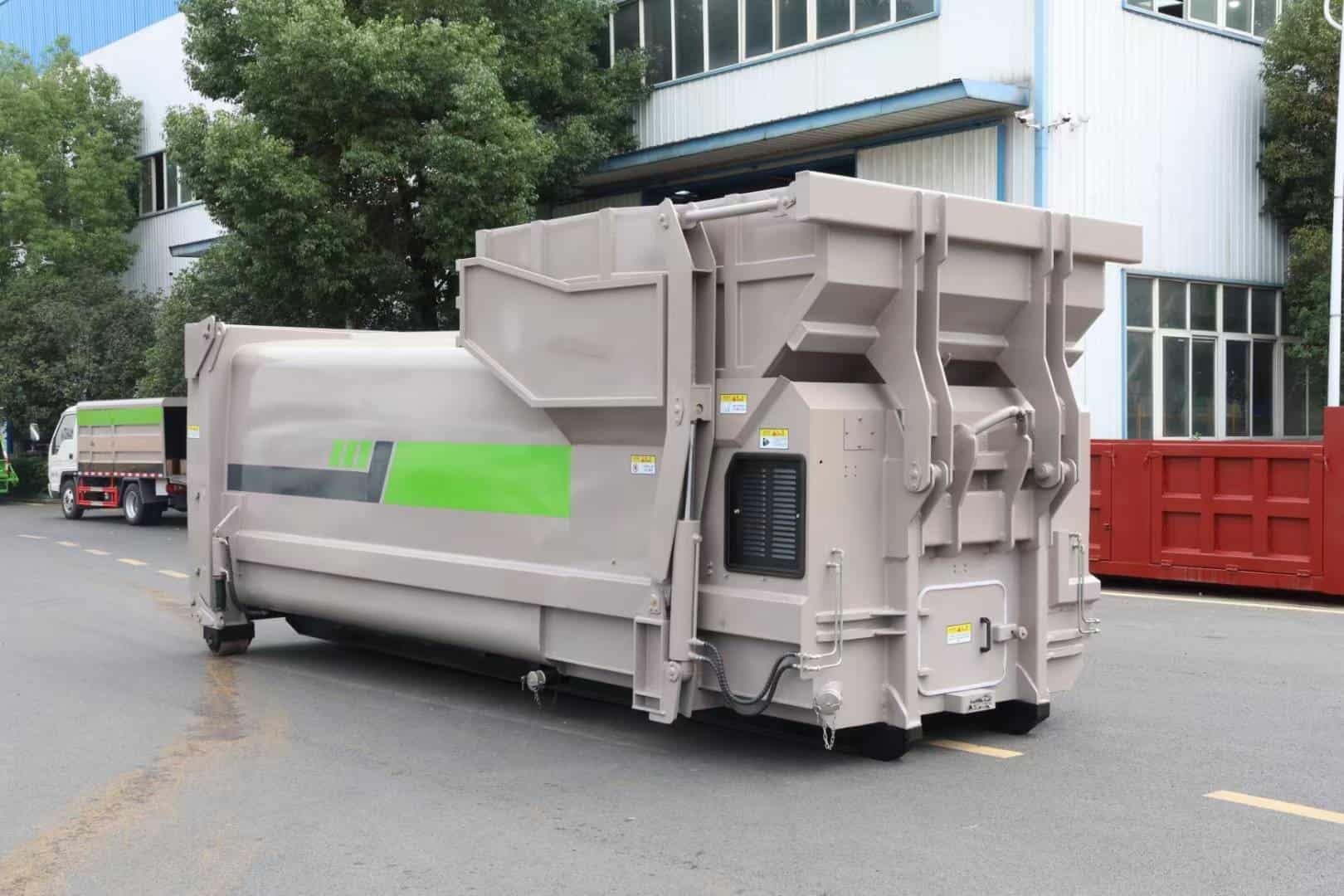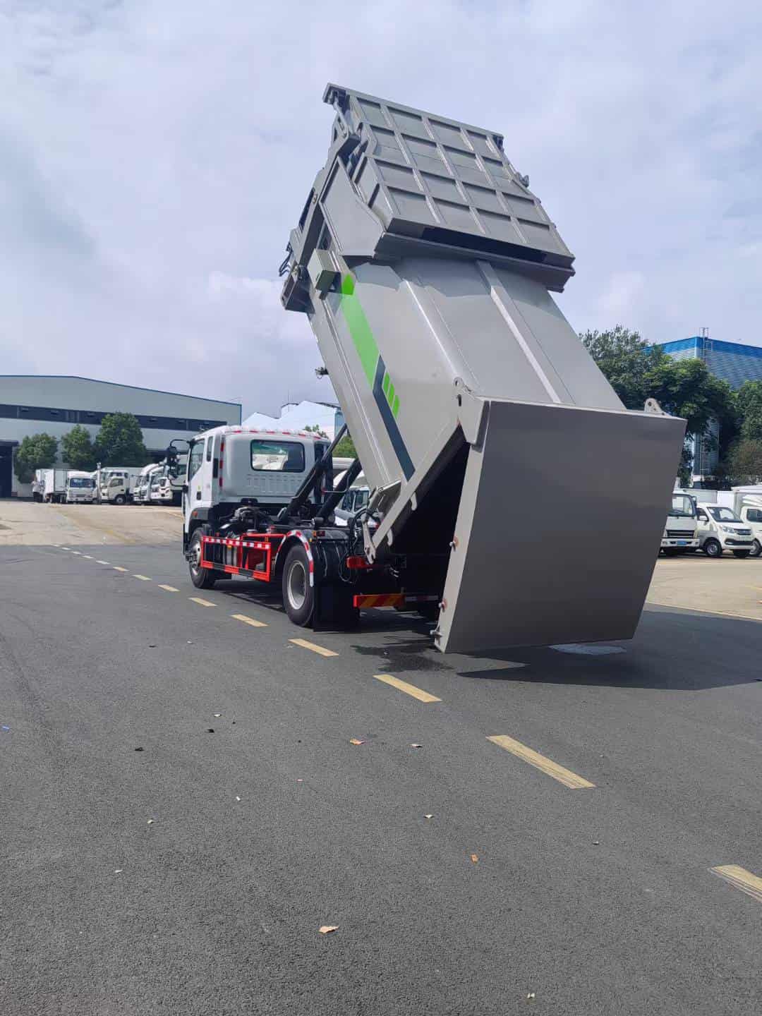 钩臂车采高强度特种钢板制作,伸缩臂结构,液压锁紧,电控操作,主要用于垃圾转运站压缩减容后的生活垃圾密闭转运到垃圾处理场或者对散装垃圾进行收集。该车可以针对不同的垃圾转运站匹配不同的箱体,箱体的全封闭式设计可避免转运途中的二次污染。装厢、卸料、卸厢等操作可以由驾驶员一人在车上完成,也可以在车下操纵,是一种新型、环保、操作简便可靠的垃圾转运车。