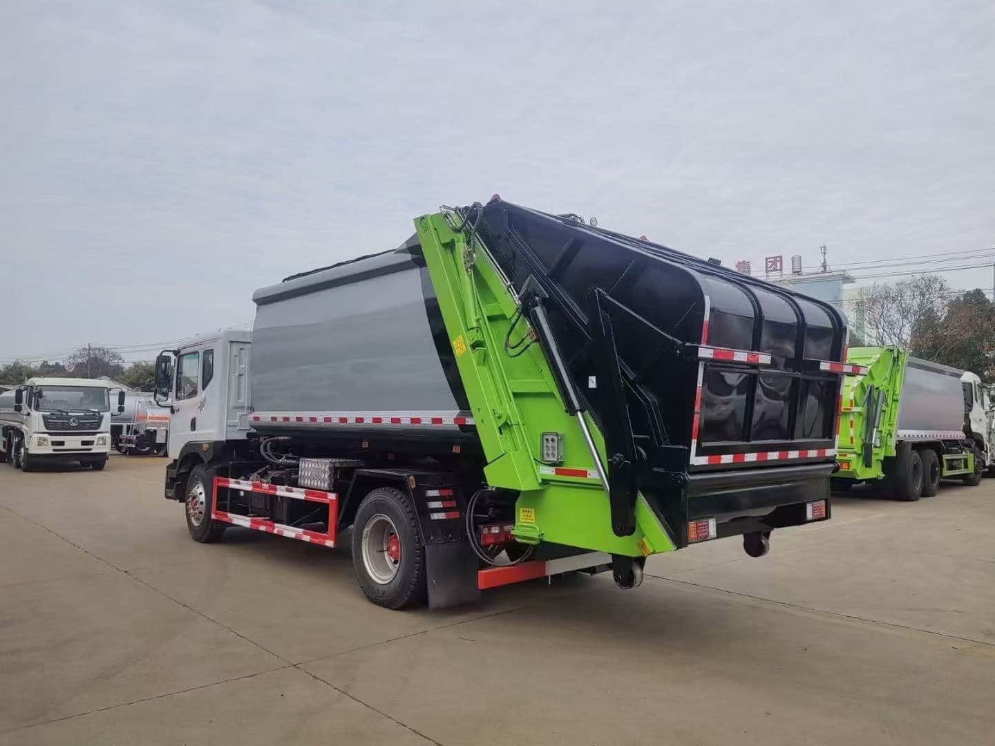 东多风利卡D9后压装缩式垃圾车,搭康配机230马力国发六动机,法士特8档速变箱,真空胎,轴距4500mm,原空厂调,电动玻璃,中控锁,正东规风股份GB7258-2017新底规盘;