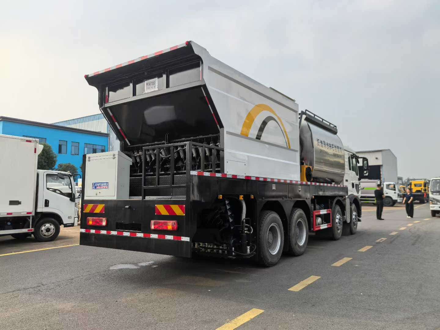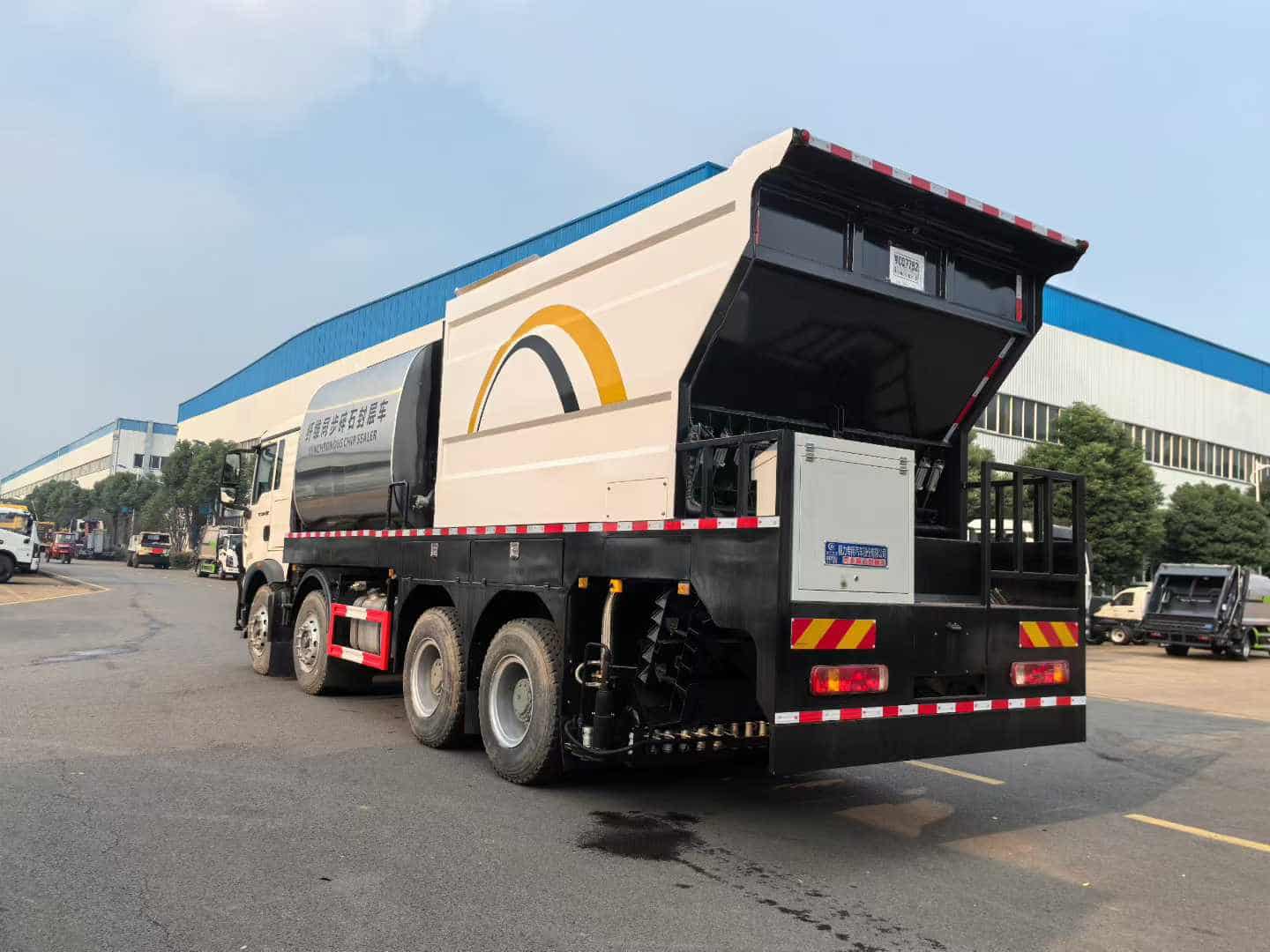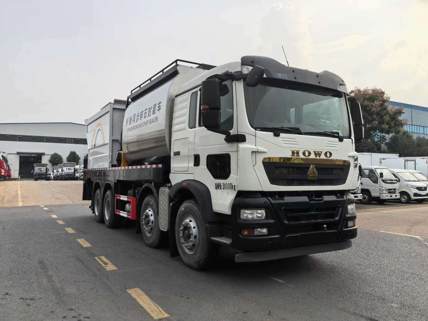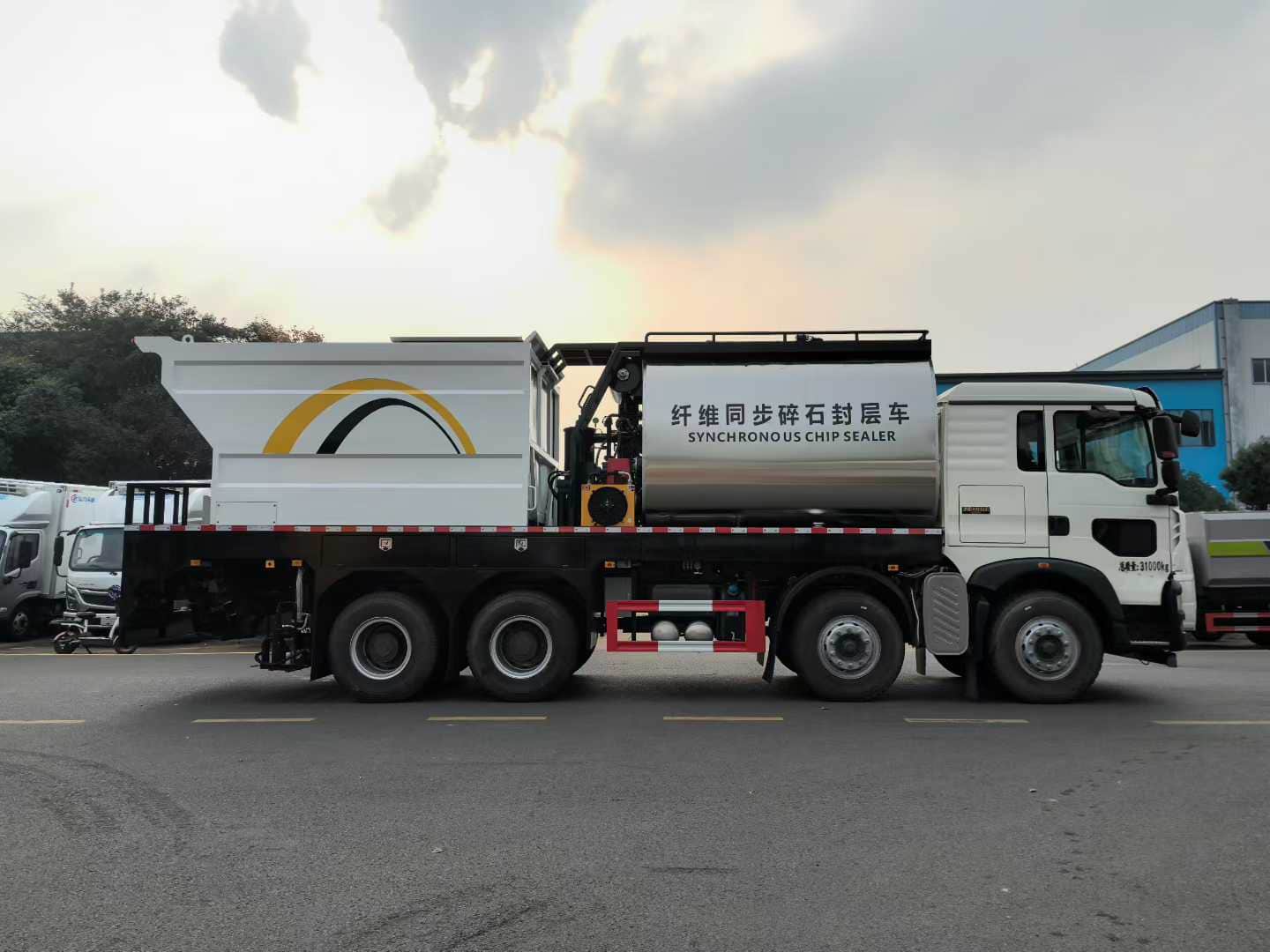 如果您对于这款新款重汽豪沃前四后八同步碎石封层车车型感兴趣,想要了解详细价格,图片,配置参数,欢迎与我们联系噢!湖北扬晟专用汽车有限公司主营:洒水车,绿化喷洒车,雾炮车,抑尘车,餐厨垃圾车,压缩垃圾车,钩臂垃圾车,挂桶垃圾车,侧装垃圾车,摆臂垃圾车,洗扫车,扫路车,道路清洗车,高空作业车,吸尘车,冷藏车,消防车,应急保障车,清洗吸污车,吸污吸粪车等车型。