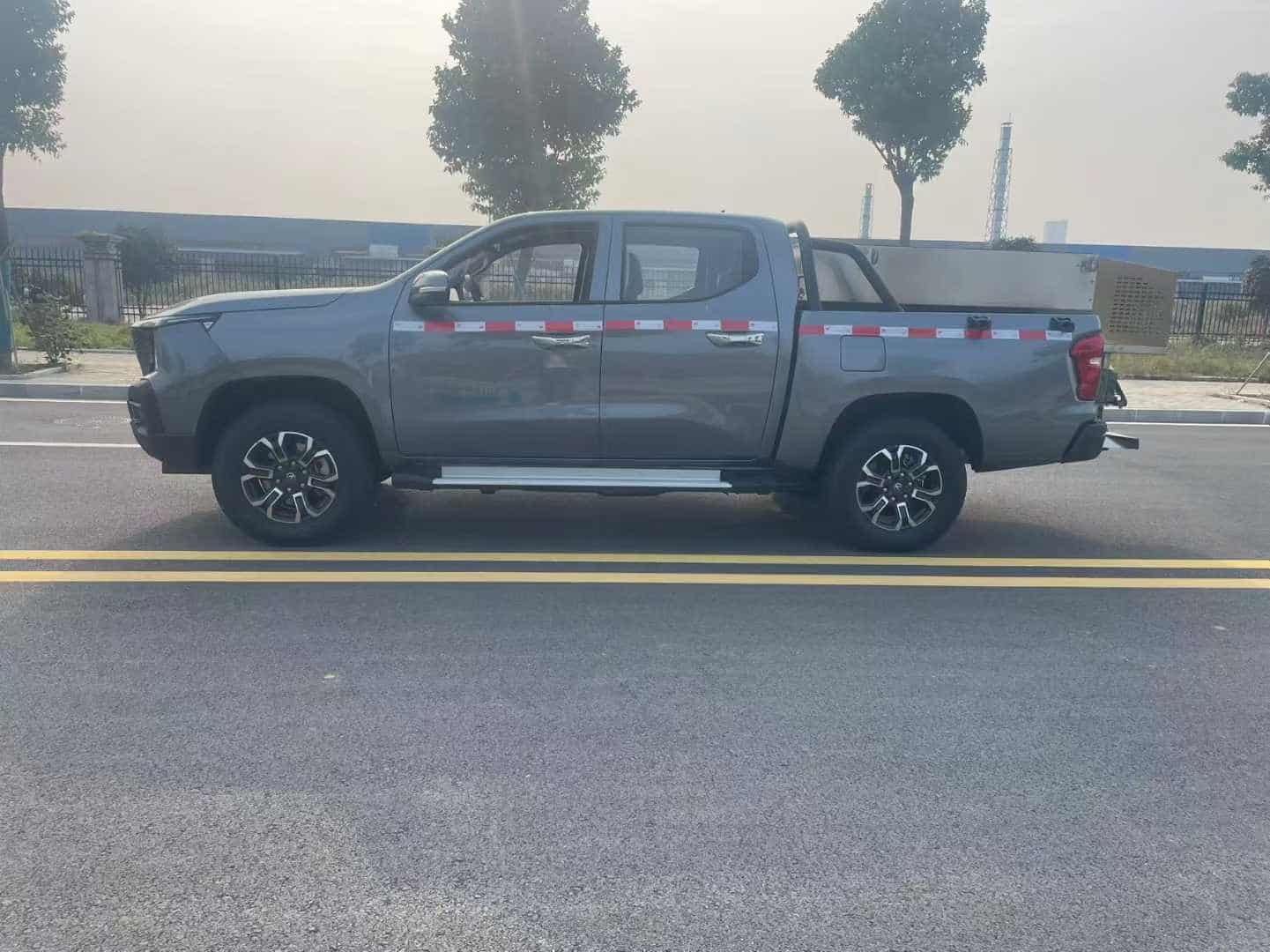 底盘配置:国轩磷酸铁锂31.8度电,蓝鲸动力JL486ZQ6(汽油2.0T),3180轴距,前悬架系统:双叉臂独立悬架,后悬架系统: 整体式非独立悬架,双电机四驱,电机最大功率200kw,电机最大扭矩 470N.m,12.3寸高清大屏,四轮盘刹、245/70R17轮胎、LED大灯、日间行车灯、侧踏、搪塑仪表、多功能方向盘、货箱宝、防滚架、双联屏、蓝牙、无钥匙进入&一键启动、驾驶模式选择、EPS电动助力转向、电子式怀挡、CC定速巡航、织物+皮质座椅、双气囊、黑色内饰、手动空调、自动大灯、电动调节外后视镜、4扬声器、胎压监测、V2L对外放电功能ESC+TSC+HHC+HDC+AYC+BA、倒车雷达达、影像