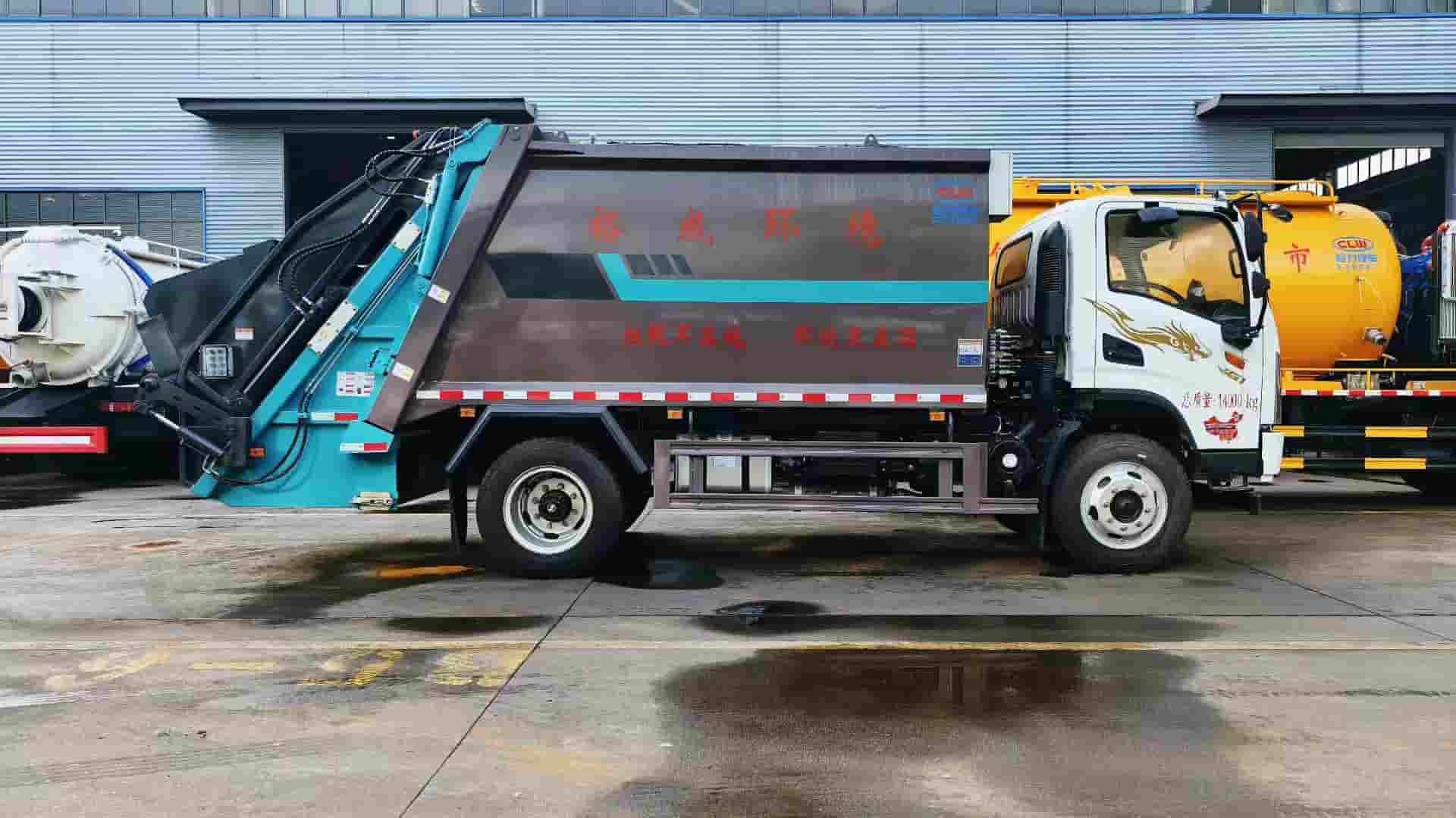 玉柴动力4.0排量180马力发动机,陕齿八档变速箱,3800轴距,825-20钢丝胎,尾部三角斗带挂桶翻转机构,车身短小精悍,垃圾装载量大,动力强劲,轻松拿捏西南山区路况