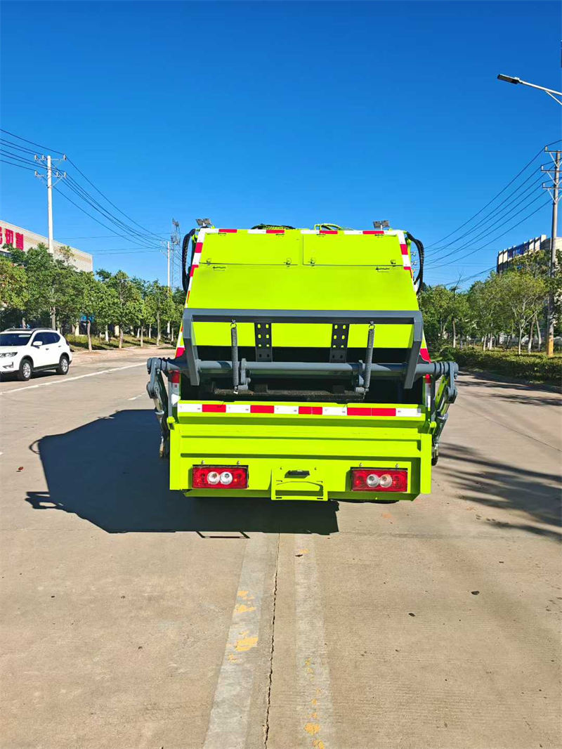 箱体容积 6.5 立方,采用T700优质高强度钢制作,外方内圆箱体,满足承载力学下的超美外观设计,箱体满焊、上下冷弯龙骨加强,扎实耐用,双向蠕动装载,超强压缩动力,超大压缩比,所有配件采用知名品牌,英国DLI密封圈,江苏油缸,中梅多路阀,合肥长源泵,高密度液压油管,海普瑞斯油缸,CAN总线/PLC控制,平衡阀,尾部污水箱,填充器举升带液压锁紧装置,尾部带照明灯,方便夜间工作。尾部标配挂桶翻转架,可挂120L/240L国标塑料垃圾桶,可选装660L垃圾桶,圆铁桶后尾部装置,可加装密封盖。