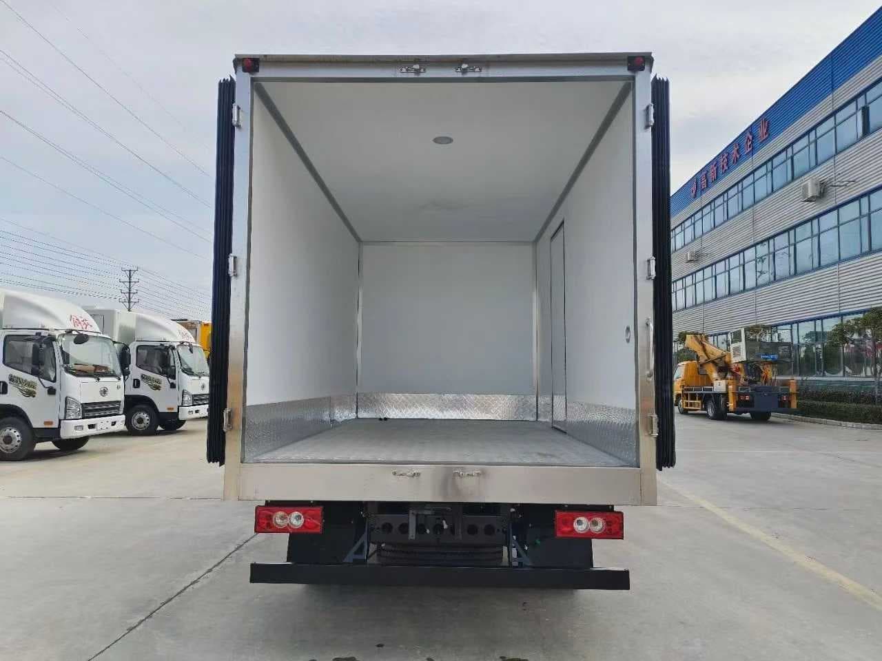 上装配置:厢体采用内外玻璃钢材质,中间8CM厚保温层,采用国内大型负压设备,一次成型,底板采用10CM厚具有抗震保温耐用加厚板,厢体四周采用直角铝形材包边,后门采用不锈钢包边,不锈钢锁件,铝合金形材,地板玻璃钢花纹板,开单侧门。