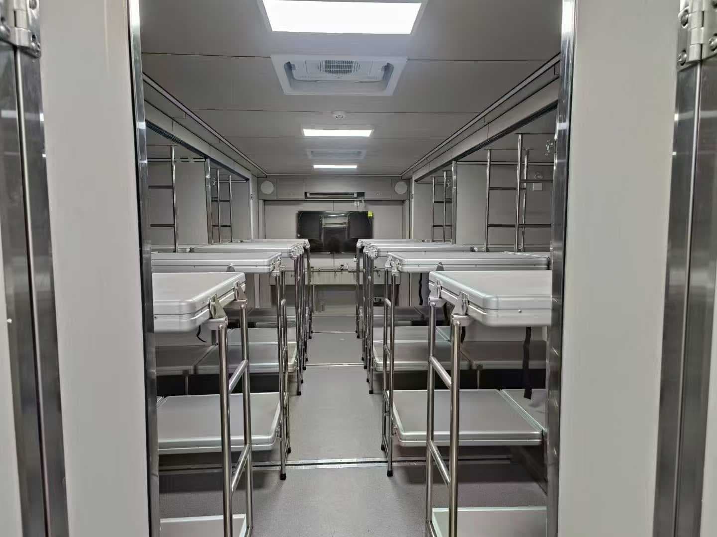 24人住宿车是一款应急宿营车,采用高品质材料与工艺制造,具备舒适的住宿环境与卓越的安全性。拥有多功能空间,可容纳24人同时住宿。车辆配备空调系统、独立卫生间等,提供温馨的住宿体验。多重加载能力,适应多种复杂路况。