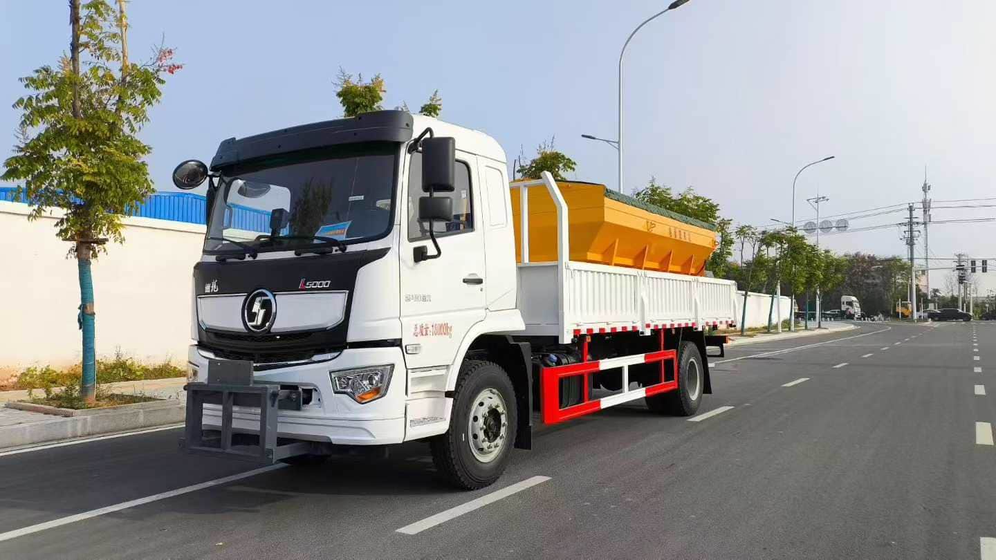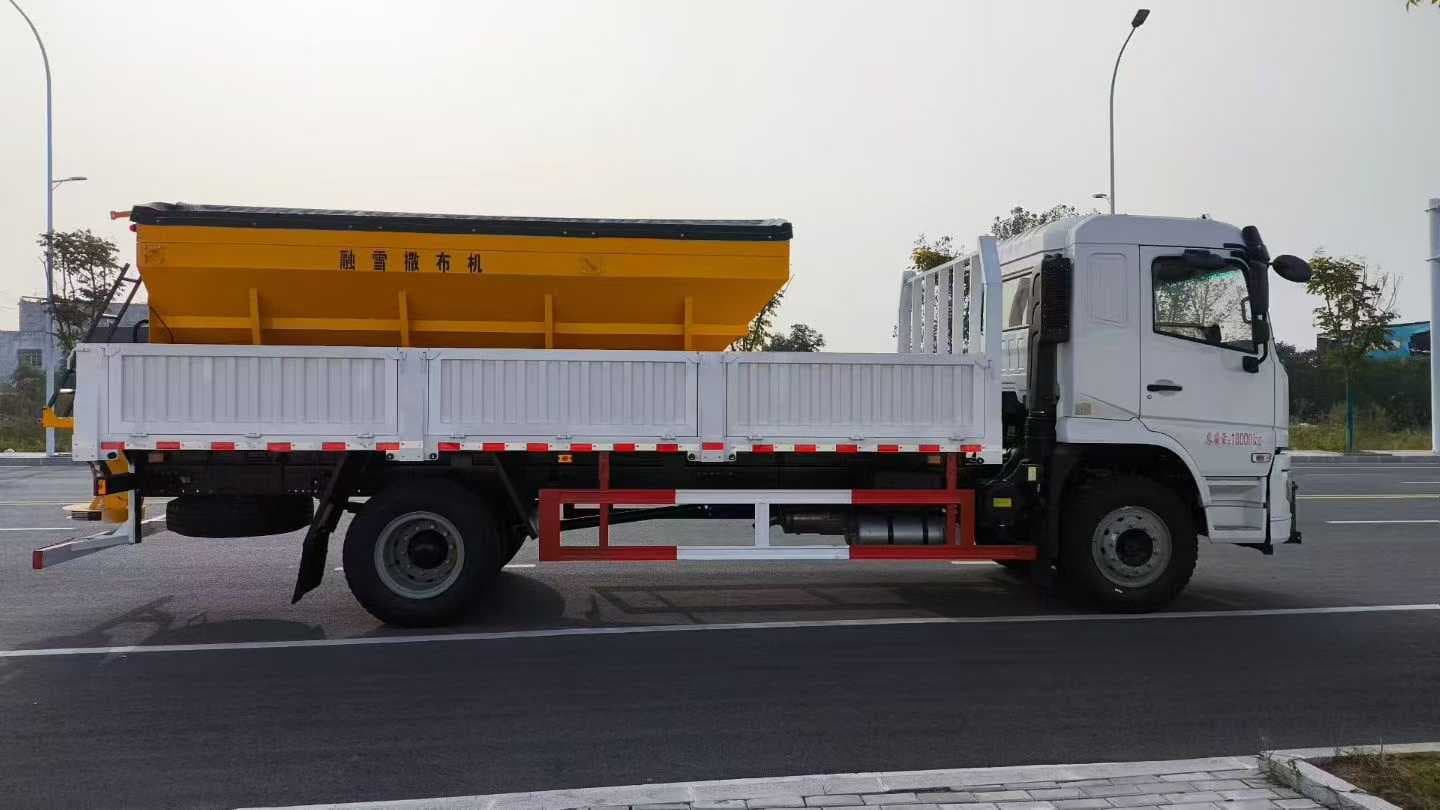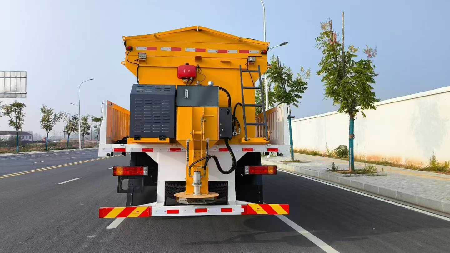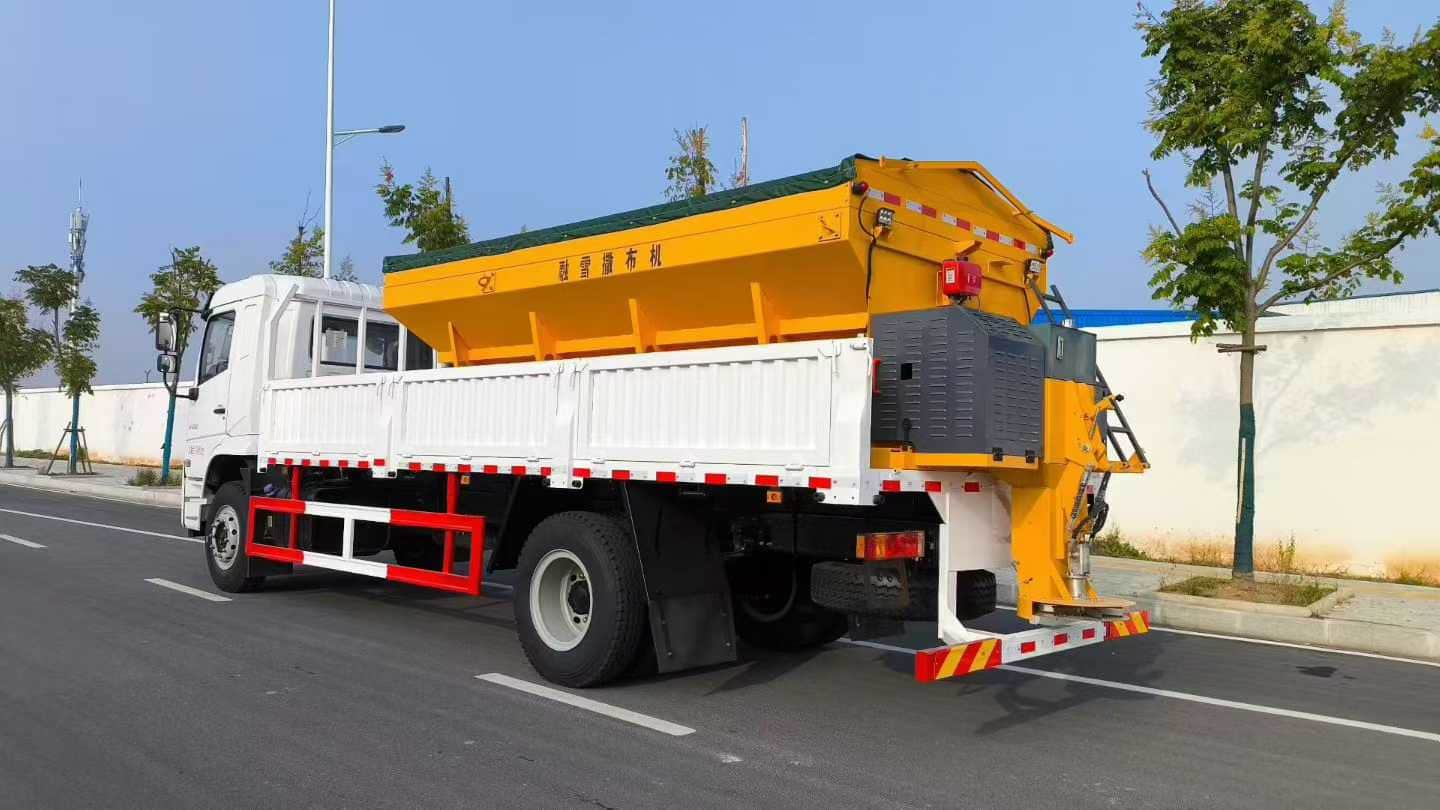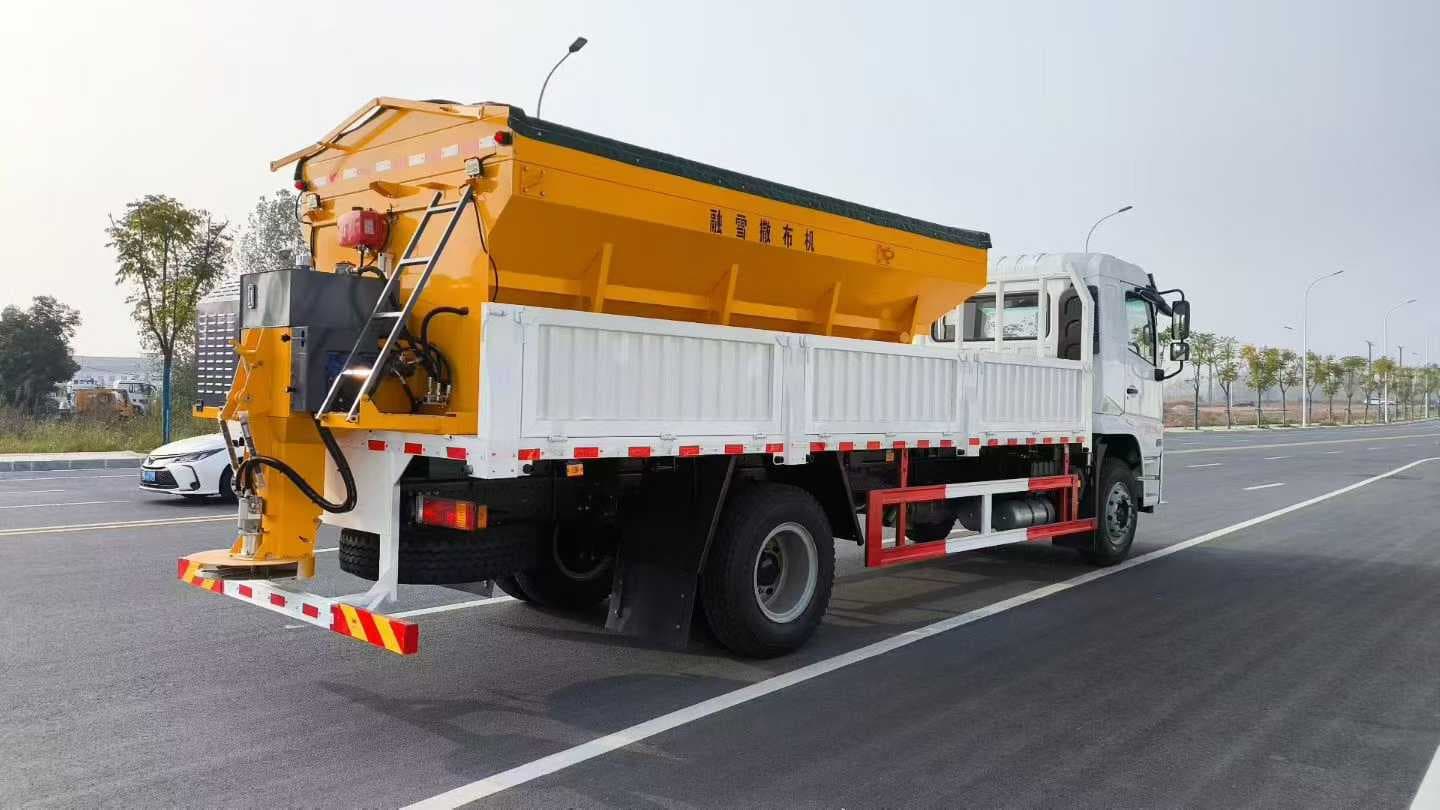 前置推雪铲或扫雪滚刷可互换使用,箱体配8方融雪撒布机,一车多用。
