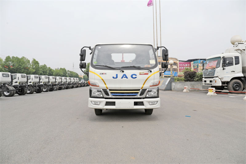 底盘配置:采用江淮柴油/电混合动力底盘,白色翻转驾驶室,云内150马力柴油发动机,轴距3300mm、发动机D25TCIF1(混动),无锡明恒电机,15.5KWH磷酸铁锂,7.00R16低阻轮胎(真空胎),DH45-3混动变速箱,焊接桥,MP3,断气刹,电加热后视镜,ABS,电动转向,多功能方向盘,普通座椅,空调,80L油箱,组合大灯,前雾灯,车联网,排放终端、中控锁,电动车窗,不带备胎。