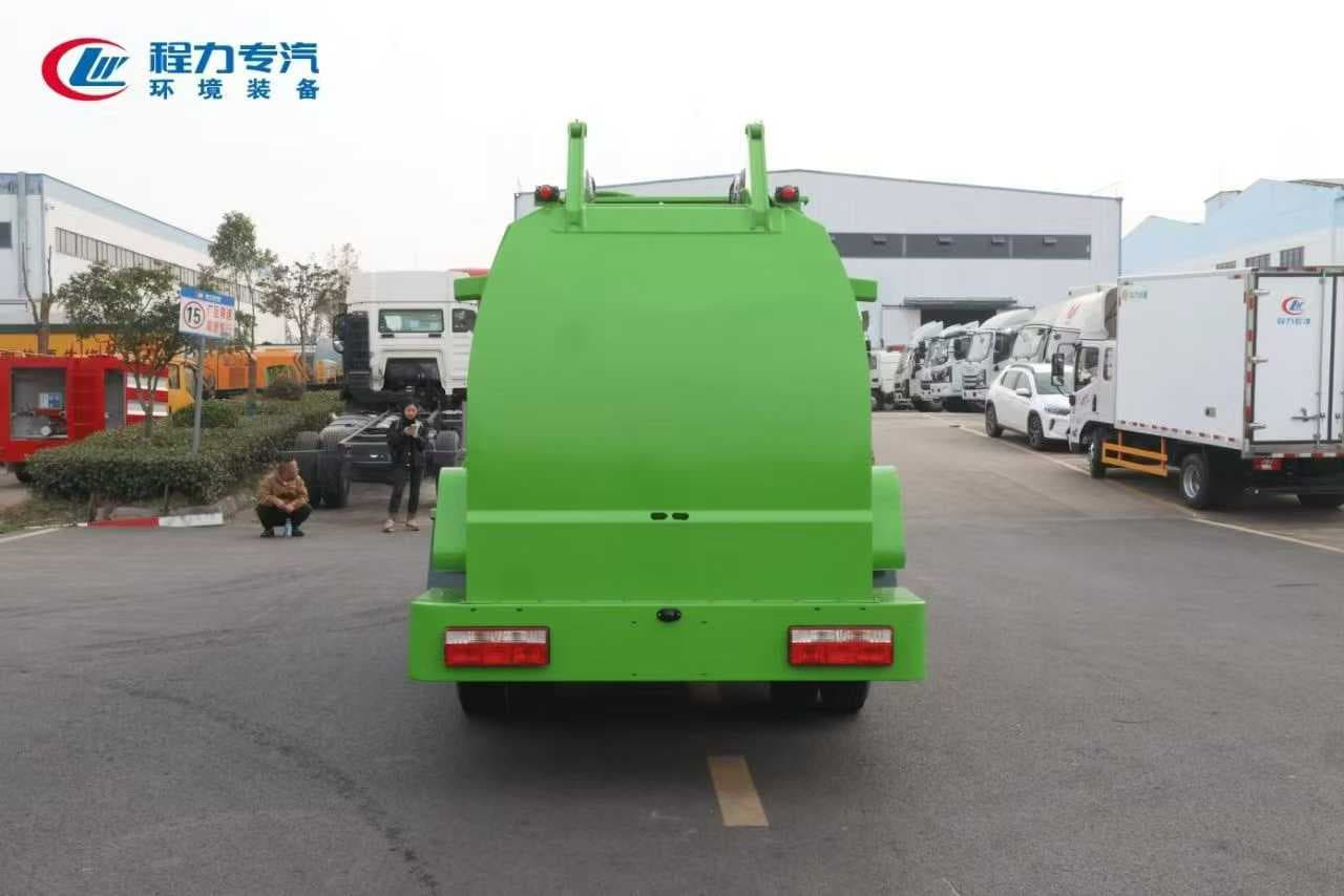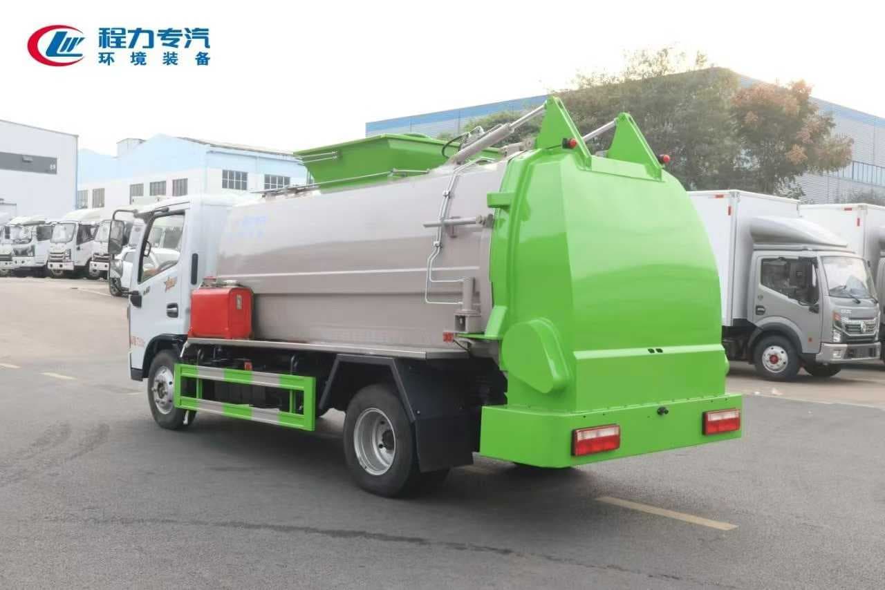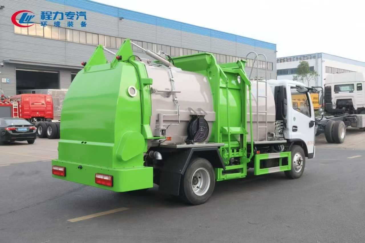国六,3308轴距,玉柴155马力/全柴143马力,容积约7立方,厢体采用国标边三底四猛板制作,驾驶室电动操作一键功能,罐体右侧安装挂捅提升机构,推铲卸料带初步固液分离,可挂载120L/240L国标方形垃圾桶,带清洗功能,配清洗管清洗枪,选装200-300升清水箱,后门采用液压开启、液压关闭锁紧,夜间工作照明灯,尾部安装排污阀,防失误操作。